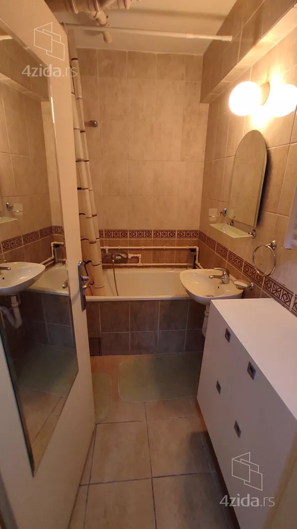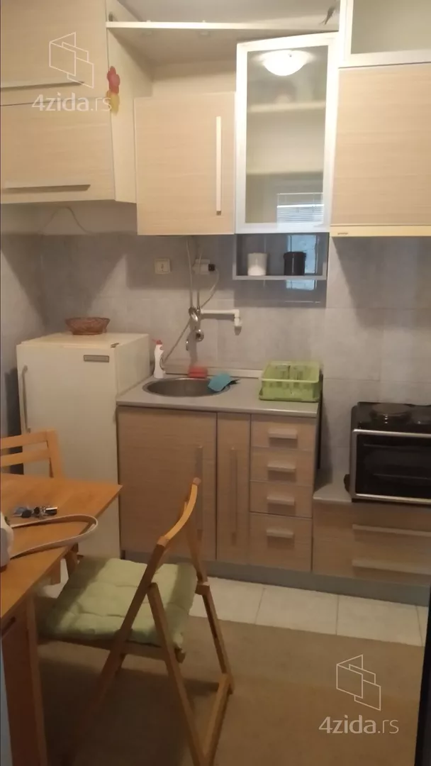 - Opremljenost: Namešteno - TV, klima, veš mašina, kuhinjski elementi, frižider, zamrzivač, šporet, rerna, ležaj, plakar, ugradni plakar