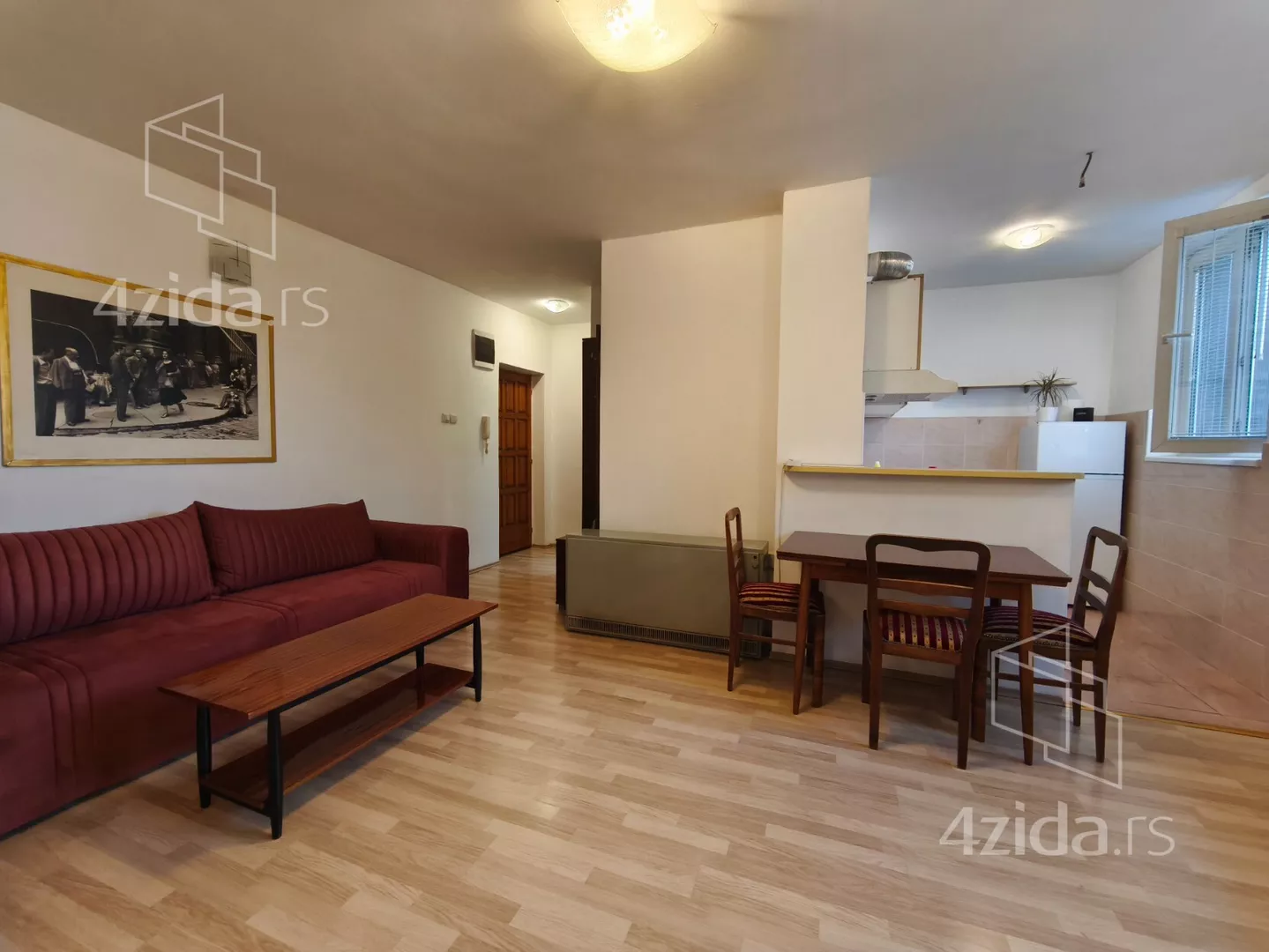 - Opremljenost: Namešteno - TV, klima, veš mašina, kuhinjski elementi, frižider, šporet, ležaj, plakar, kancelarijski nameštaj