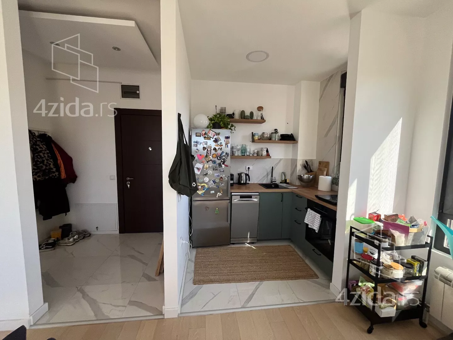 - Opremljenost: Namešteno - internet, TV, klima, veš mašina, kuhinjski elementi, sudo mašina, frižider, zamrzivač, šporet, rerna, ležaj, plakar