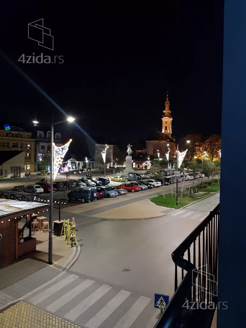 Na Trgu Republike u Starom Gradu Novog Sada izdaje se kompletno namešteni trosoban stan od 80m² po ceni od 900 evra mesečno. Stan se nalazi na prvom spratu četvorospratne zgrade sa liftom i kompletno je renoviran.