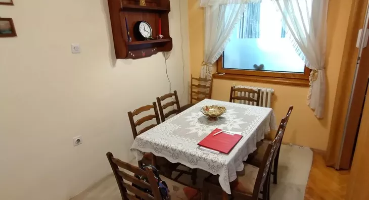 - Opremljenost: Namešteno - internet, TV, klima, veš mašina, kuhinjski elementi, sudo mašina, frižider, zamrzivač, šporet, rerna, ležaj, plakar, ugradni plakar