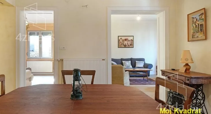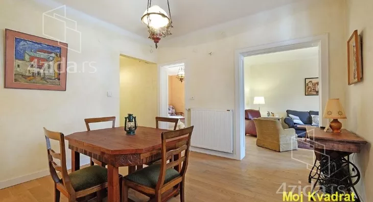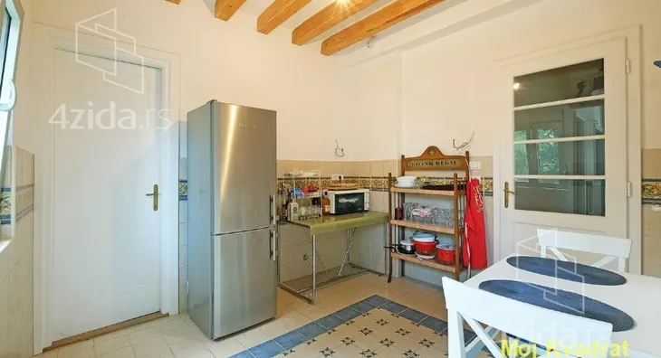 Stan poseduje dva ulaza, dva mokra čvora, kupatilo, četiri velike sobe, kuhinju, trpezariju i ostavu u sklopu kuhinje, kao i dve terase. Stanu pripada podrum, ostava u dvorištu od 12m2, parking mesto takođe u dvorištu koje obezbeđuje kapija na motorni pogon.