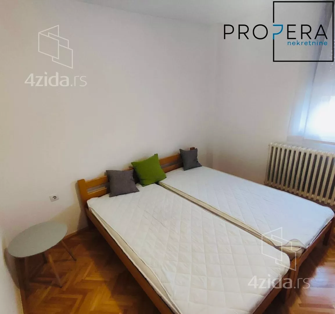 - Opremljenost: Namešteno - internet, TV, klima, ventilacija, veš mašina, kuhinjski elementi, frižider, zamrzivač, šporet, rerna, ležaj, plakar, ugradni plakar