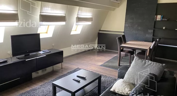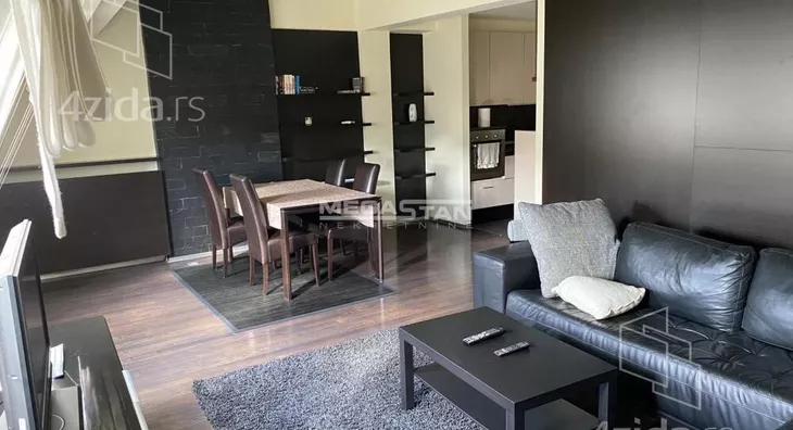 Stan na perfektnoj lokaciji u fenomenalnom stanju - moderno i luksuzno opremljen penthouse sa prostranom terasom i đakuzijem. Stan odiše luksuzom, komforan i svetao, sa drvenim podovima i skockanim nameštajem po meri, za preporuku i najzahtevnijim klijentima. Po strukturi je 3.0 duplex, orijentisan ka dvorištu zgrade. Donji nivo sastoji se od: - Prostrane dnevne sobe - Potpuno opremljene kuhinje sa trpezarijom - Velike terase okrenute ka dvorištu zgrade - Gostinjskog toaleta. Gornji nivo sastoji se od: - Master spavaće sobe sa francuskim balkonom - Udobne spavaće sobe - Ogromnog kupatila sa tuš kabinom i đakuzijem. Niski režijski troškovi. Obavezan depozit. Agencijska provizija za zakupca 50%. Broj agencije u Registru posrednika 298. Mapa je informativnog karaktera, ne prikazuje tačnu lokaciju nekretnine.