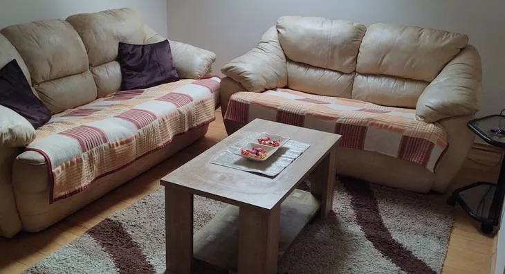 - Opremljenost: Namešteno - TV, veš mašina, kuhinjski elementi, frižider, mikrotalasna rerna, šporet, rerna, ležaj, plakar