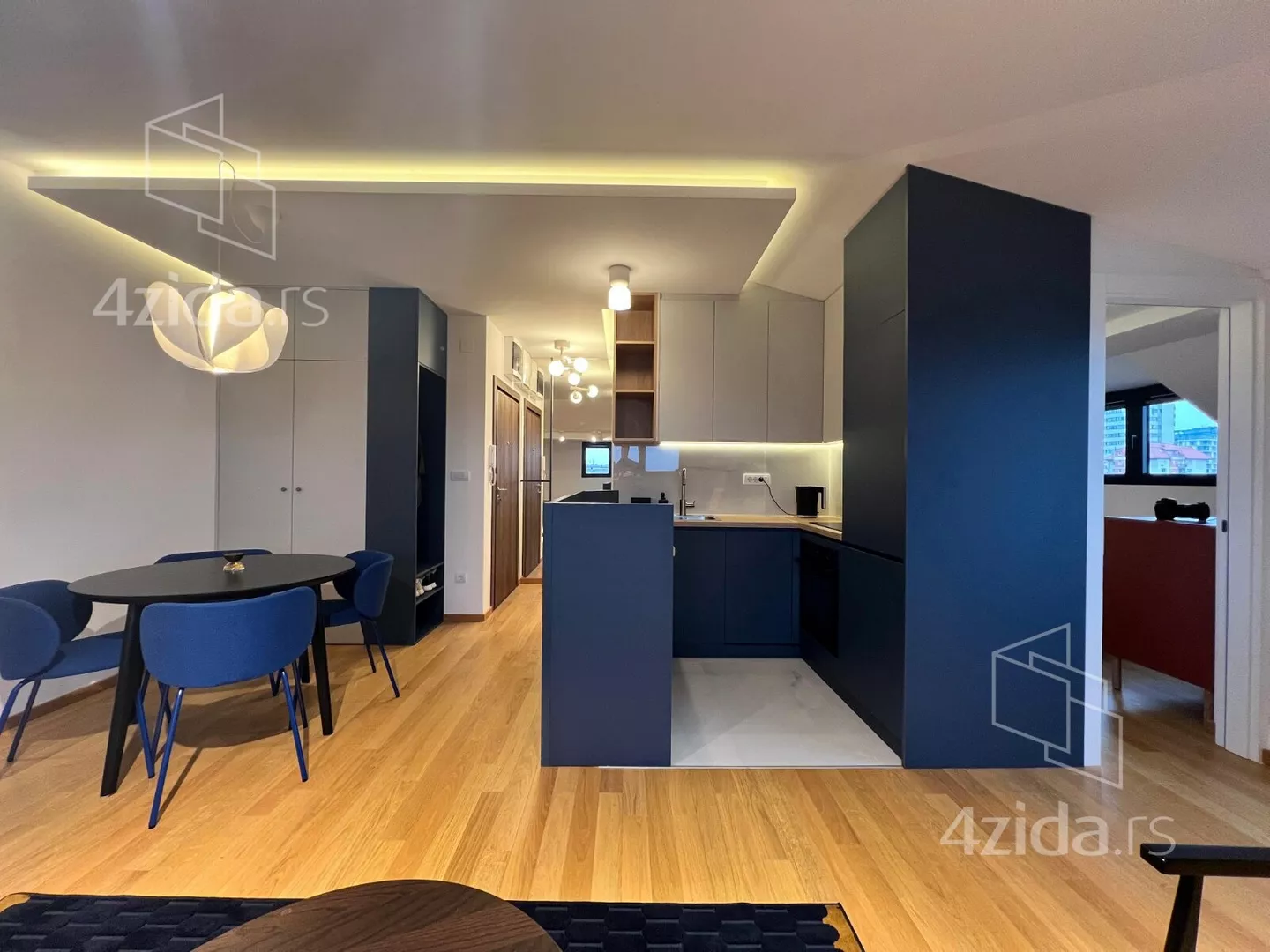 Nov stan 55m2, lux, stan koji se prvi put rentira, u novoj lepoj i modernoj zgradi, panoramskog pogleda, bez buke, svetao, kompletno i elegantno opremljen kvalitetnim nameštajem, tehnikom i uređajima.