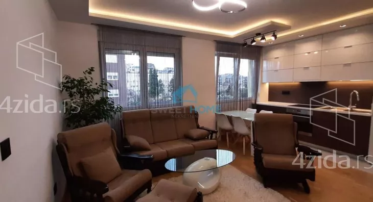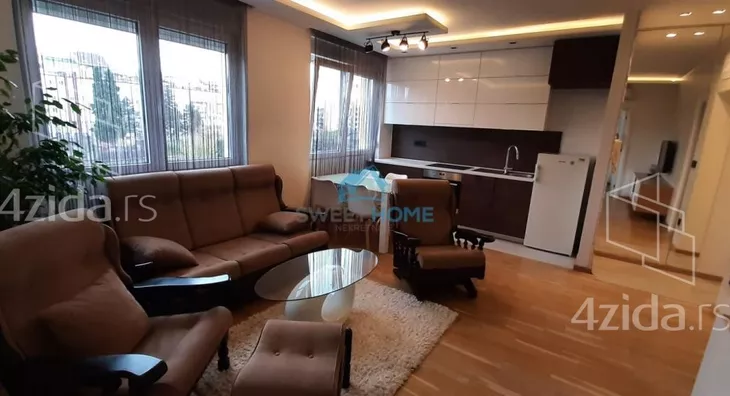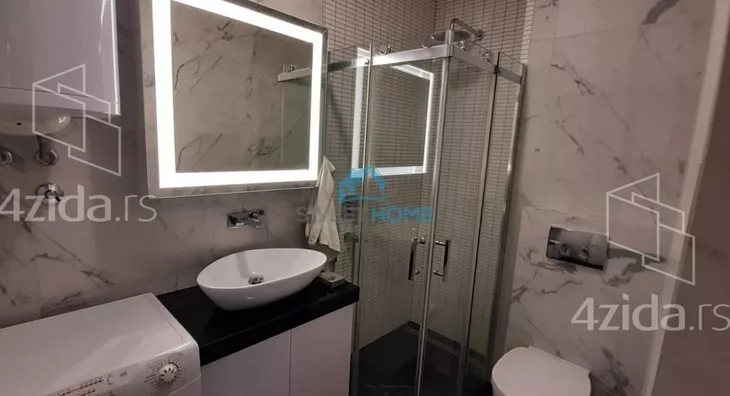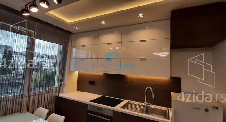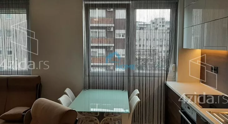 - Opremljenost: Namešteno - internet, interfon, TV, klima, veš mašina, sudo mašina, frižider, rerna, ležaj, plakar