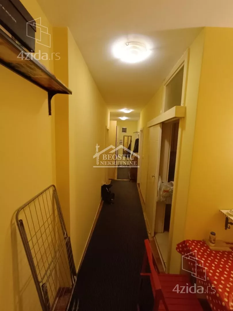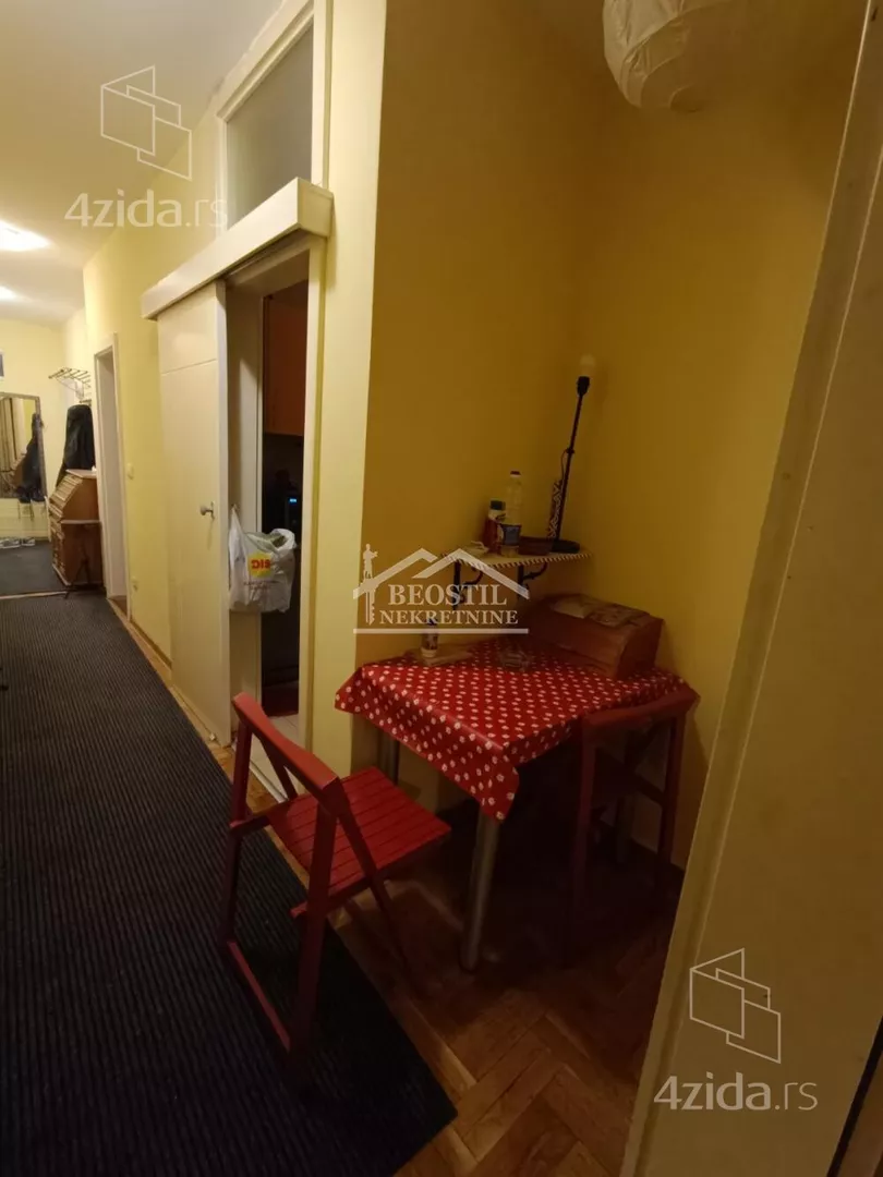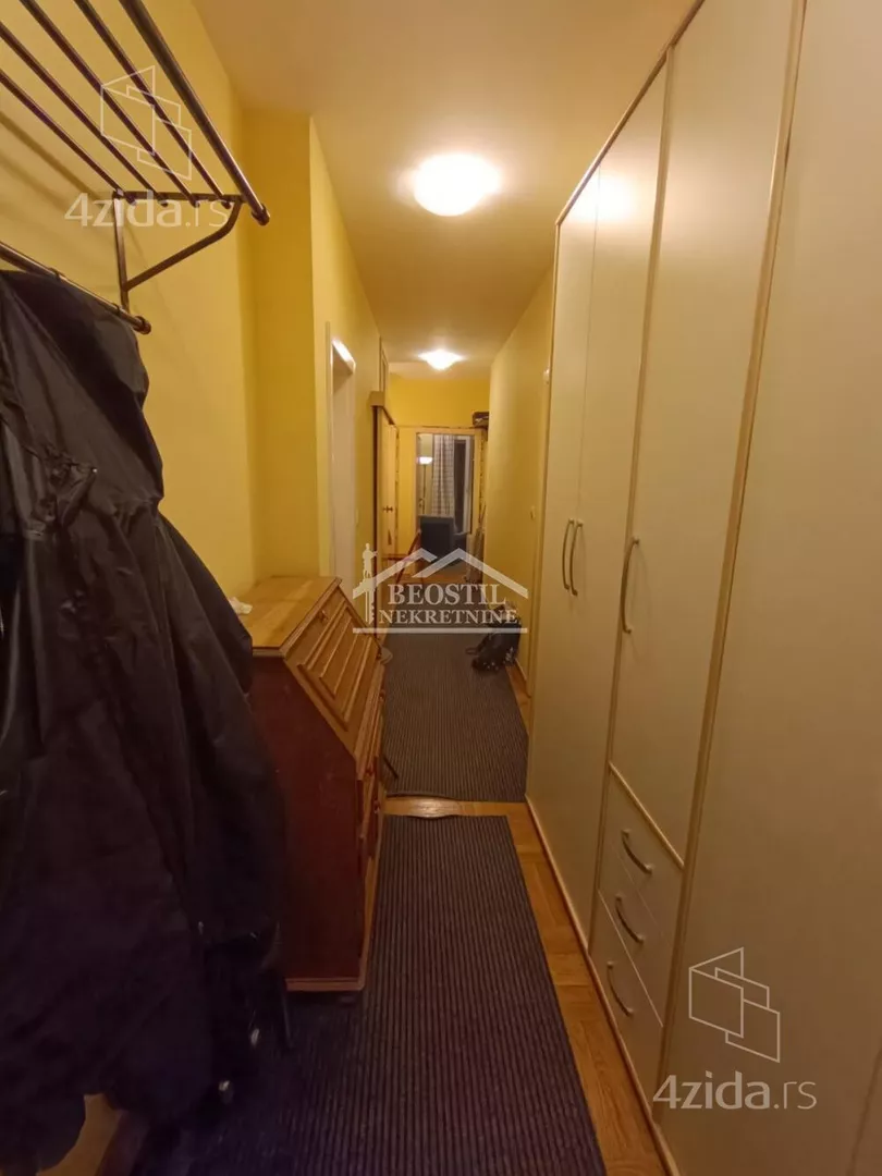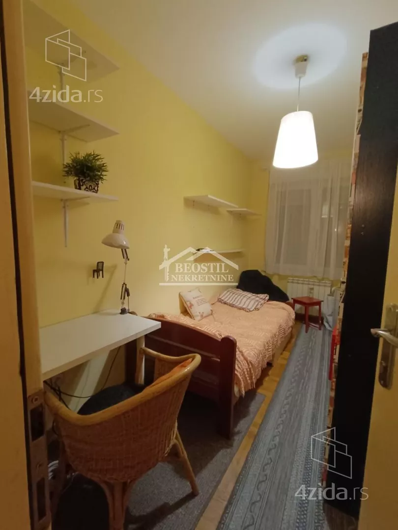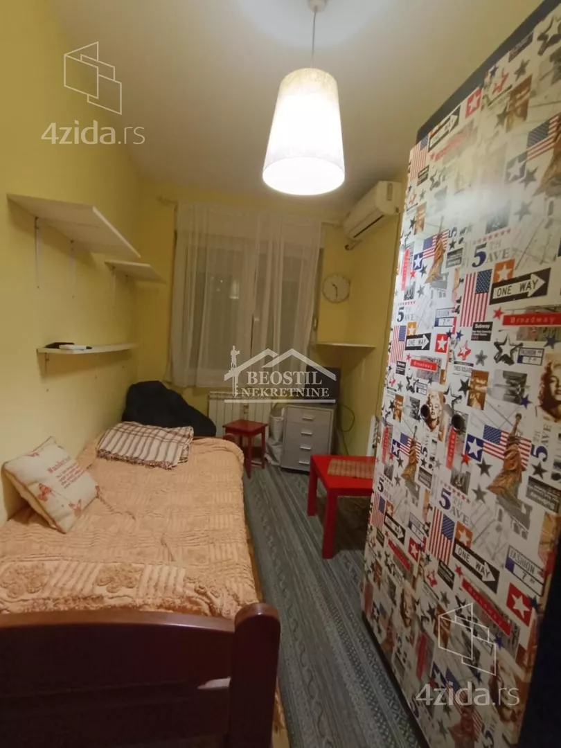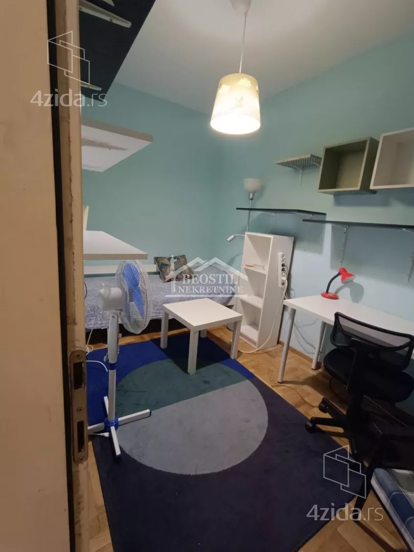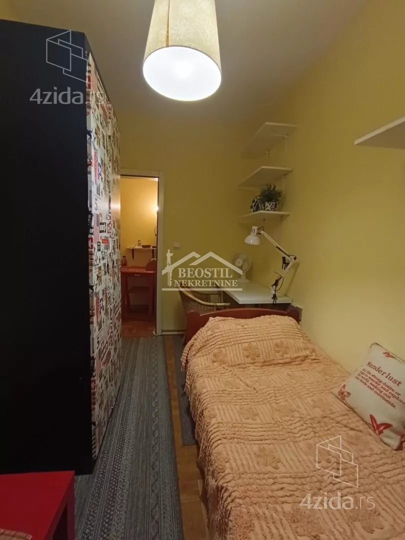 Opremljen stan u Hadži Mustafinoj ulici, prvoj paralelnoj sa Dimitrija Tucovića, na drugom spratu, u zgradi sa liftom. Sadrži jednu veću sobu sa terasom i dve manje, sve tri sadrže po singl krevet, radni sto, police i televizor. Sobe su nezavisne jedna od druge, ne prolazi se kroz jednu, da bi se ušlo u drugu. Dugačak hodnik sa velikim garderoberom, iz kog se ulazi u sobe, kuhinju i kupatilo. Veoma zgodan za tročlanu porodicu, ili tri osobe koje žele da imaju sopstveni prostor za spavanje i svakodnevno funkcionisanje. Zgrada je u mirnoj ulici, na 2 minuta od prve stanice GSP-a, koja je savršena polazna tačka za transport do bilo kog dela grada (trole 28 i 40, autobusi 77 i 79). Najbliža stanica na Bulevaru Kralja Aleksandra je na 5 minuta od zgrade (tramvaji 5, 6, 7 i 14). Zgrada je na minut od Dimitrija Tucovića, 5 minuta od Bulevara Kralja Aleksandra, 5 minuta od pijace Đeram. Agencijska provizija 50% od prve zakupnine. Za više informacija posetite naš sajt https://www.beostilnekretnine.rs / ili nas posetite - Beograd, Knez Mihailova 23/III