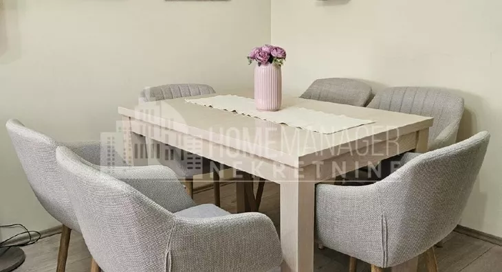 - Opremljenost: Namešteno - TV, klima, veš mašina, kuhinjski elementi, frižider, šporet, rerna, ležaj, plakar