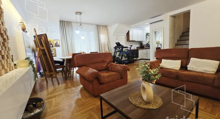 Agencijska oznaka 9189828. Stan je kompletno namešten i opremljen sa stilom. Sastoji se od dnevnog boravka sa trpezarijom, kuhinje, čak tri spavaće sobe i dva kupatila. Tri terase, donja poseduje šank a gornje đakuzi i saunu. U ceni se izdaje i garaža. Za više informacija pozovite
