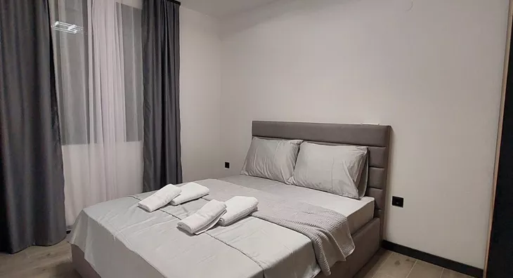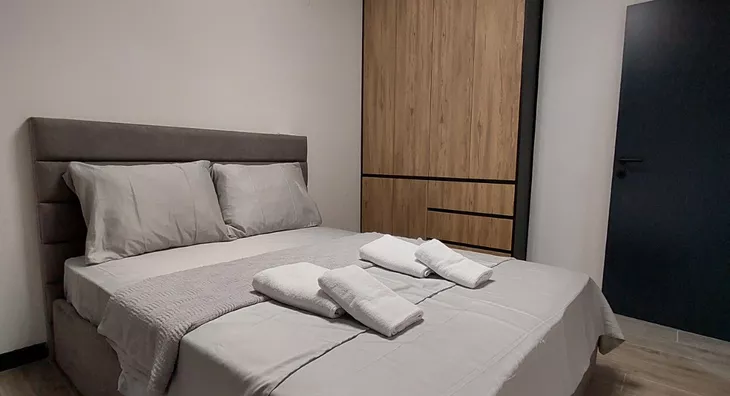 Stan se sastoji iz prostrane dnevne sobe (garnitura se razvlači u krevet), kupatila, moderne kuhinje sa trpezarijom (odvojena kuhinja), odvojene spavaće sobe i lepog hodnika.