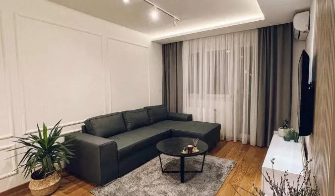 - Opremljenost: Namešteno - internet, TV, klima, veš mašina, frižider, rerna, ležaj, plakar, kanalizacija