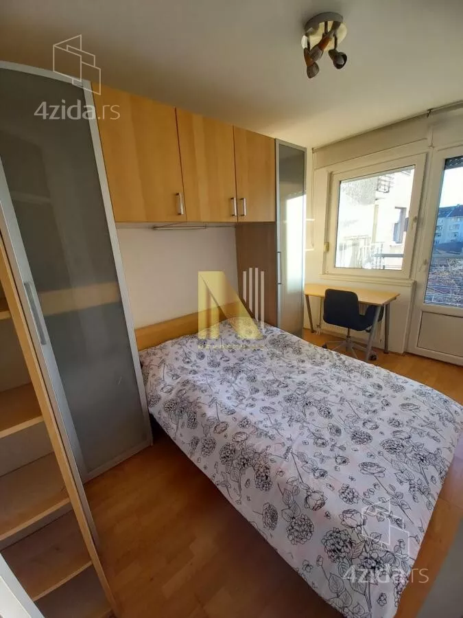 Izdaje se kompletno namešten 1.5 stan na 4. spratu zgrade, sastoji se od dnevne sobe koja je spojena sa kuhinjom i odvojenom spavaćom sobom, poseduje i terasu.