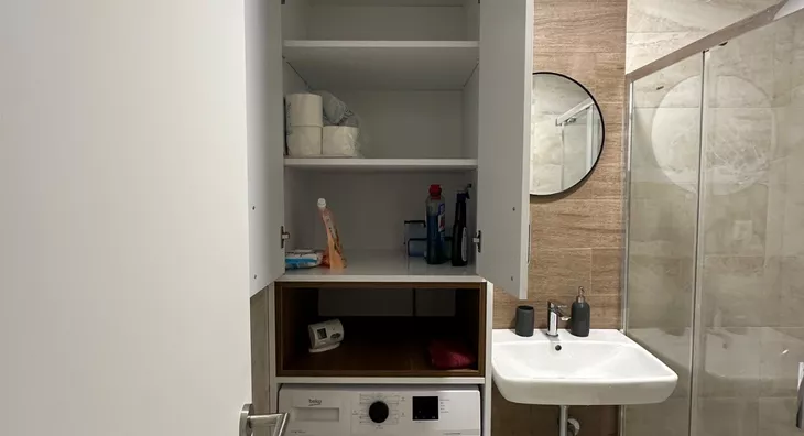 - Opremljenost: Namešteno - internet, TV, klima, veš mašina, kuhinjski elementi, frižider, zamrzivač, šporet, rerna, ležaj, plakar
