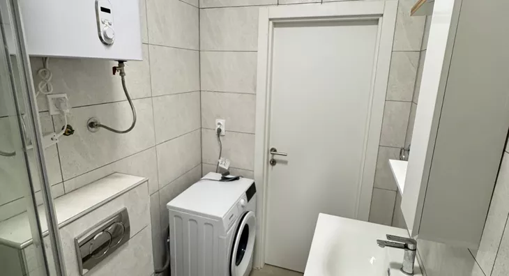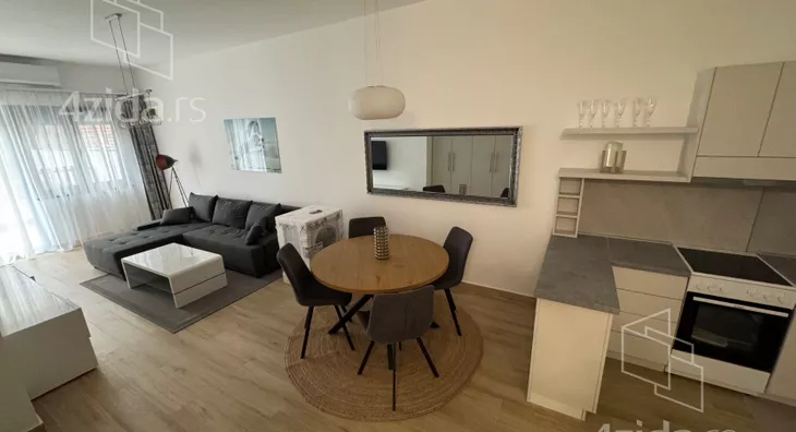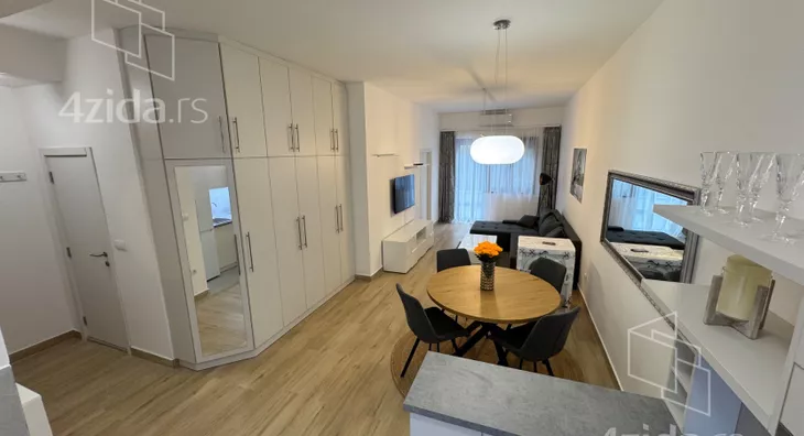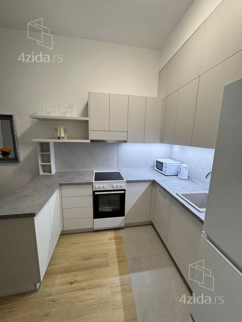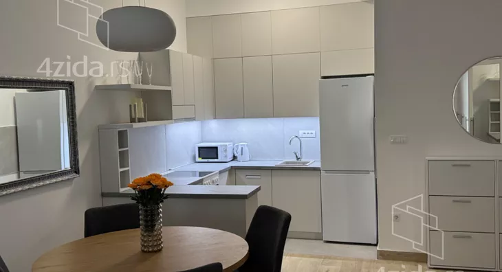 - Opremljenost: Namešteno - internet, TV, klima, veš mašina, kuhinjski elementi, sudo mašina, frižider, zamrzivač, mikrotalasna rerna, šporet, rerna, ležaj, plakar, ugradni plakar, kancelarijski nameštaj