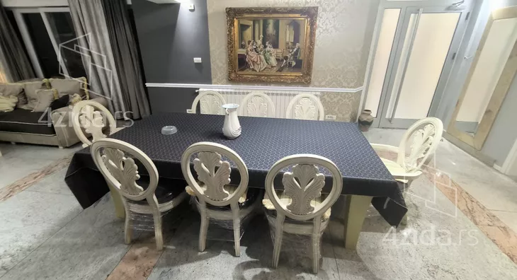- Opremljenost: Namešteno - internet, TV, klima, veš mašina, kuhinjski elementi, sudo mašina, frižider, zamrzivač, mikrotalasna rerna, šporet, rerna, ležaj, plakar, ugradni plakar