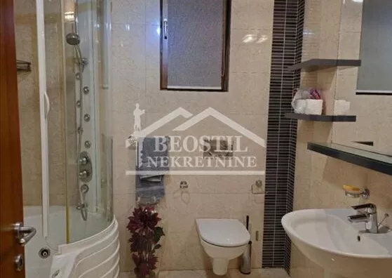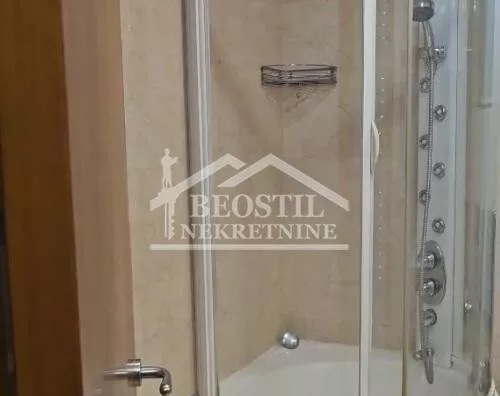 Izdajemo luksuzan četvorosoban stan na IV spratu odlične zgrade, sa predivnim pogledom na Hram. Ovaj dvostrano orijentisan stan obuhvata prostran dnevni boravak (podno grejanje u dnevnom boravku) sa klavirom, kaminom i radnim delom, kuhinju i trpezariju, kao i odvojen spavaći blok sa tri spavaće sobe, garderoberom, tri kupatila i dve terase. Opremljen je modernim nameštajem i kvalitetnom belom tehnikom, te je odmah useljiv. U cenu uključeno i garažno mesto.. Agencijska provizija 50% od prve zakupnine.