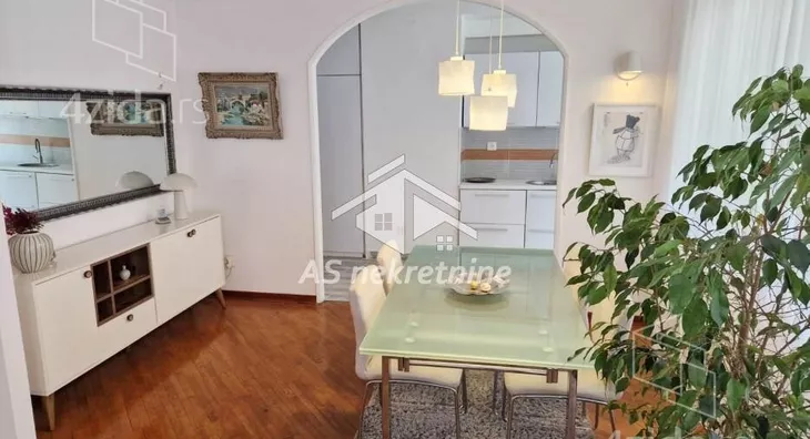Stan ima puno prirodne svetlosti, sa dvostrukom orijentacijom, ka ulici i ka dvorištu. Izdaje se kompletno moderno i luksuzno namešten, prvi put na tržištu, sa potpuno novim nameštajem. Sastoji se od tri spavaće sobe, kupatila, zasebnog toaleta, prostranog dnevnog boravka sa trpezarijom, kompletno opremljene kuhinje i dve velike terase.