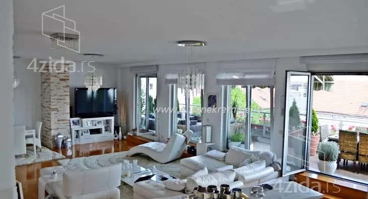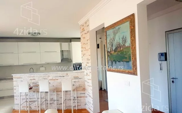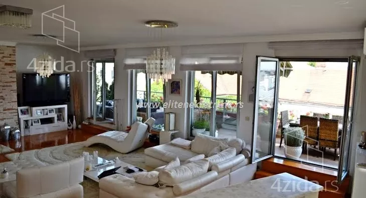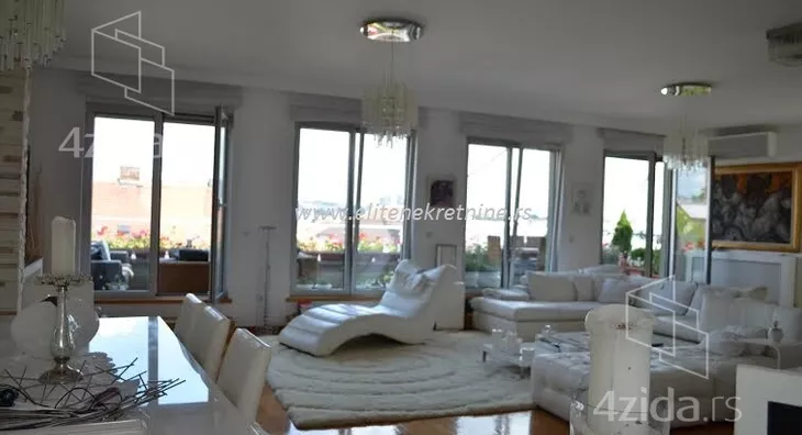 Ovaj divan, svetao stan podeljen je na dva nivoa koji su povezani širokim unutrašnjim stepeništem. Svaki nivo ima spostveni ulaz iz hodnika zgrade. Donji nivo se sastoji iz prostranog ulaznog hola, četri spavaće sobe (jedna je master bedroom), 3 kupatila i velikog gardorobera. Sledeći nivo je open space kocept koji se sastoji od dnevne sobe, prostrane kuhinje, terase i gostinkog toaleta. Prostor je veoma svetao, jer su prozori duž celog dnevnog boravka, od poda do plafona, i gledaju na terasu od 30m2 koja se proteže celom dužinom stana. Grejanje je centralno. Nalazi se u rezidencialnom delu Vračara u blizini škola, obdaništa, restorana, apoteke, prodavnice, salona itd. Kalenić pijaca je na samo nekoliko minuta hoda. Stan ima i svoje garažno mesto.