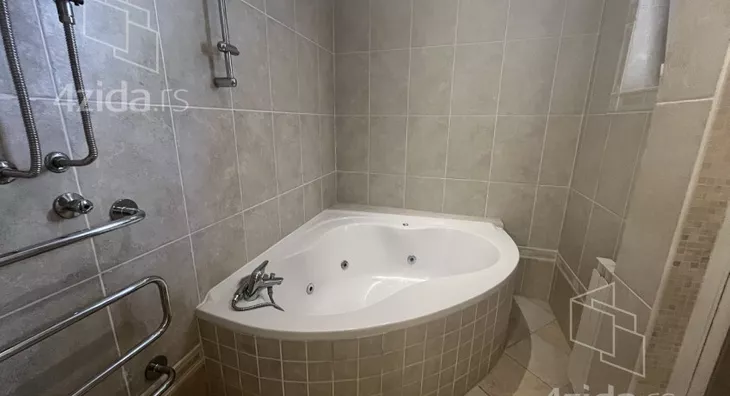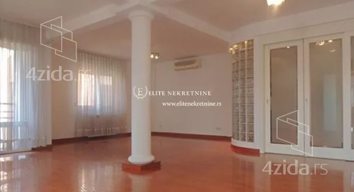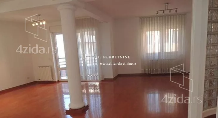 Sastoji se od četiri spavaće sobe, dnevnog boravka, kuhinje sa trpezarijom, gostinskog toaleta, dva kupatila (jedno opremljeno đakuzijem), kao i tri terase. Stan je svetao, funkcionalan i komforan, sa dobro organizovanim rasporedom prostorija. Izdaje se polunamešten.