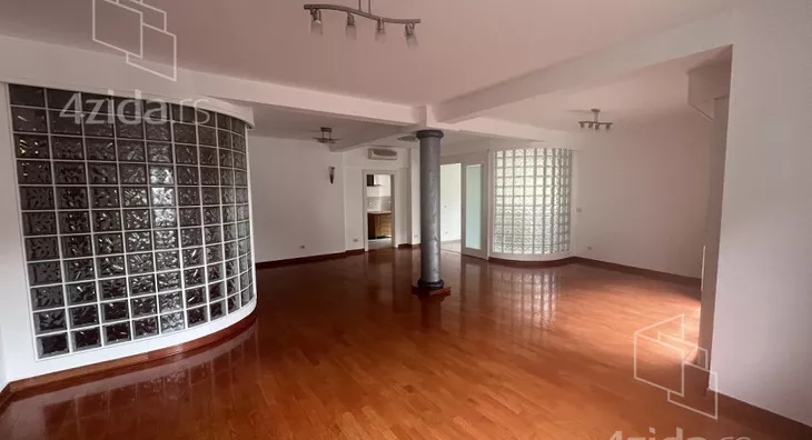 Izdajemo prostran petosoban stan, površine 203m², u blizini Hrama Svetog Save, na trećem spratu novije, lepo održavane zgrade.