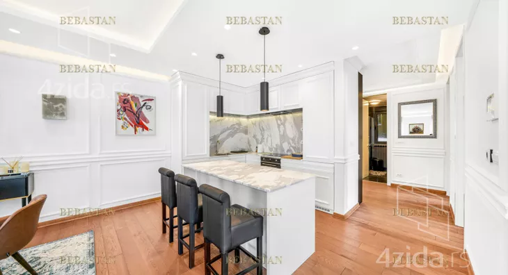 Prelep svetao stan u novoj zgradi u najlepšem delu Vračara blizu hrama Svetog Save. Opremljen je novim luksuznim nameštajem.