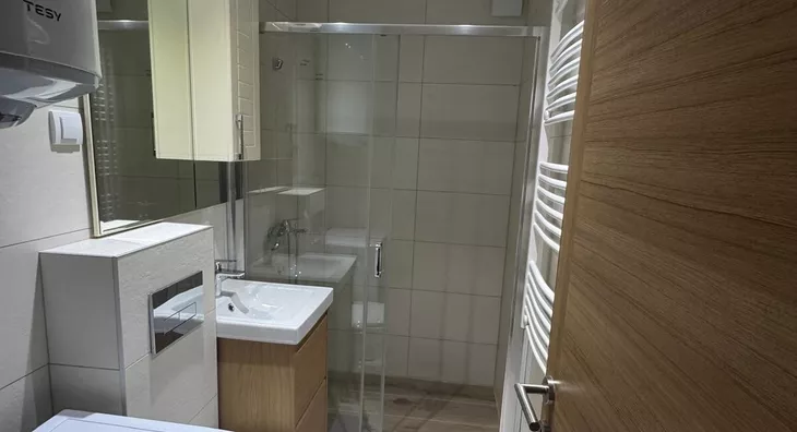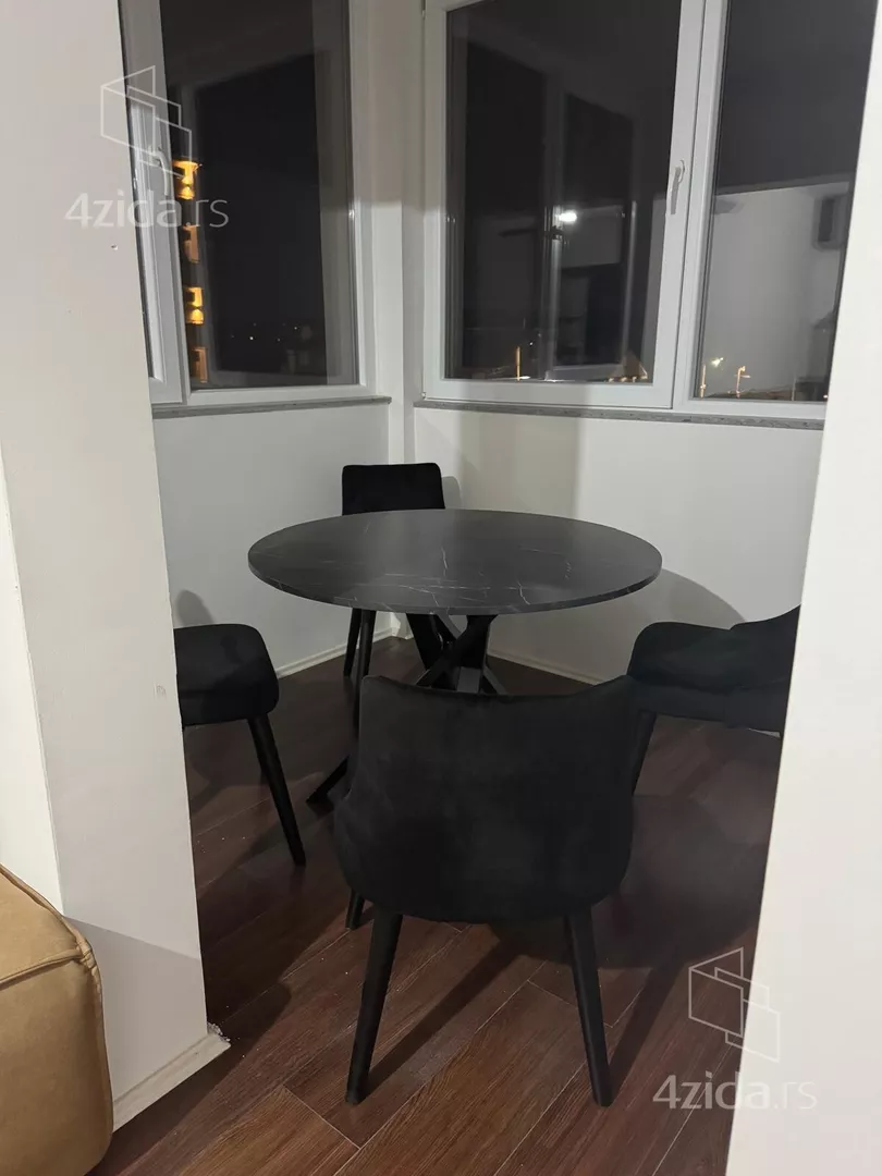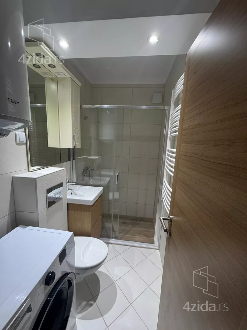 - Opremljenost: Namešteno - TV, klima, veš mašina, frižider, zamrzivač, šporet, rerna, ležaj, plakar, ugradni plakar