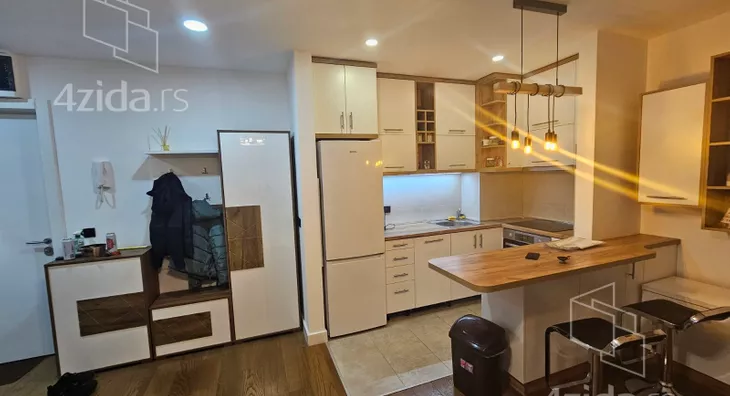 Celokupan enterijer odiše promišljenim dizajnom i skladom boja, stvarajući prijatan, funkcionalan prostor – idealan za one koji traže praktičnost i moderan stil u srcu grada.