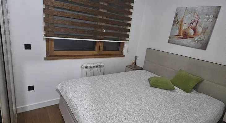 - Opremljenost: Namešteno - internet, TV, klima, veš mašina, sudo mašina, ležaj, plakar, ugradni plakar
