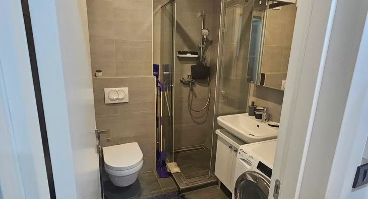 Set in the prestigious Kapije Vračara complex, this 36m² apartment combines modern aesthetics with a warm, inviting ambiance. The open-concept living area maximizes space, blending neutral cabinetry and light wood floors with a plush green sofa and industrial-chic touches like Edison pendant lights. A separate bedroom, draped in soft neutral tones, provides a private retreat, while the sleek bathroom features large gray tiles and a glass-enclosed shower for a contemporary feel. With a dedicated garage space—a true rarity in this vibrant neighborhood—this property offers both convenience and a stylish, functional design in the heart of the city.