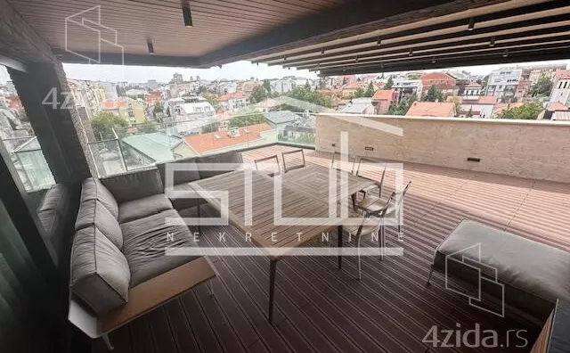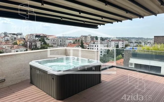 Izdaje se luksuzni apartman sa đakuzijem, i predstavlja savršen spoj udobnosti,elegancije i privatnosti,pružajući vlasnicima potpuni komfor. Smešten je na poslednjem spratu prestižne zgrade,pružajući neverovatan pogled i uživanje na prostranoj terasi sa đakuzijem,sa naglaskom na savremene tehnologije,vrhunske materijale i luksuzan nameštaj. Ova luksuzna nekretnina nudi: Prostran dnevni boravak sa pažljivim odabirom boja i tekstura koji stvaraju sofisticiranu atmosferu, u kojoj dominira nameštaj modernog dizajna, -kuhinja je potpuno opremljena najnovijim aparatima i uređajima, -četiri komforne spavaće sobe opremljene po najnovijim standardima, -prostrani moderni garderober sa funkcionalnim policama, -tri kupatila i jedan gostinjski toalet, -terasa je prostrana (120m2) i savršena za prijatan boravak na otvorenom. Opremljen je najsavremenijom tehnologijom,savršenom klimatizacijom za maksimalnu udobnost tokom cele godine,savršenim sigurnosnim sistemima, te naprednu zvučnu i video opremu. Sve je dizajnirano kako bi se stvorio savršen balansizmeđu udobnosti,stila i funkcionalnosti. Postoji poseban lift za pristup stanu, lobi, obezbeđenje 24/7, kao i četiri garažna mesta sa kamerama i alarmom Depozit obavezan u visini jednog zakupa. Nekretnina se izdaje na duži period Agencijska provizija 50%