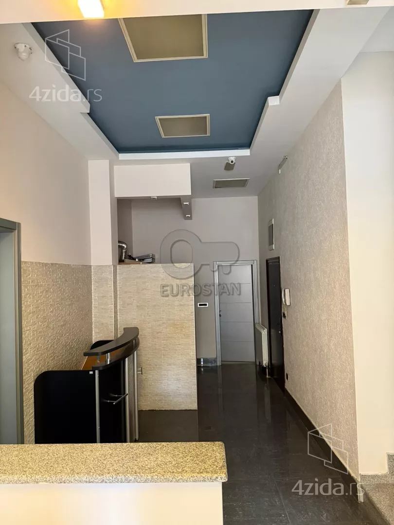 Odličan, lepo dizajniran, komforan i funkcionalan poslovni prostor u dva nivoa. Na prvoj etaži se nalazi prijemna kancelarija sa recepcijom, glavna kancelarija, kuhinja, kupatilo. Na drugoj etaži se nalaze tri kancelarije pravilnog oblika i kupatilo. Sigurnosna vrata, video nadzor, visekomorna kvalitetna PVC stolarija, dobra zvučna i termička izolacija. Ispred ulaza u zgradu se nalazi pripadajuće i dobro označeno parking mesto. Niski režijski troškovi. Mesečno plaćanje, obavezan depozit. Za preporuku. Agencijska provizija 50%