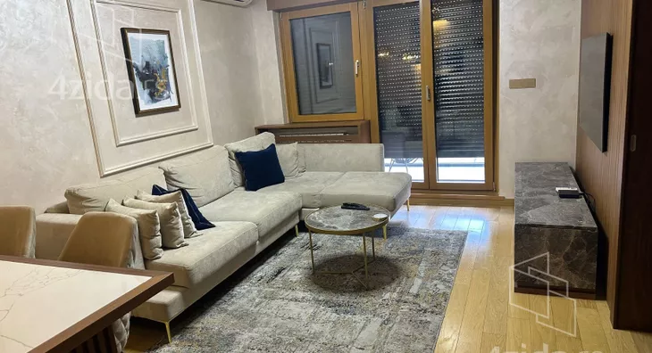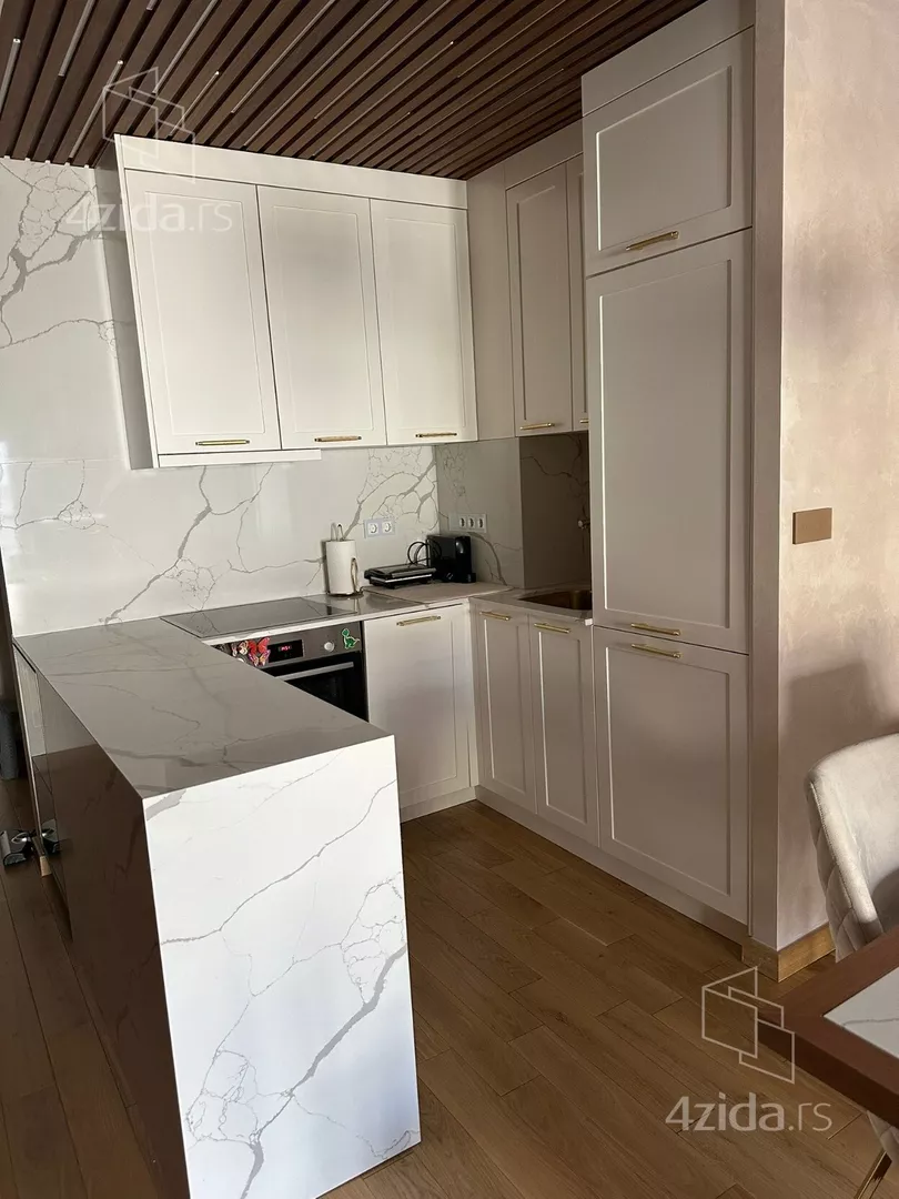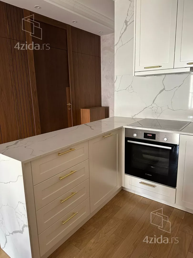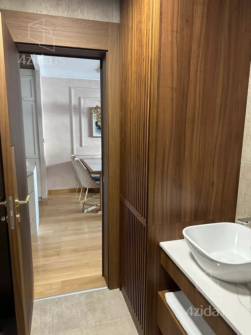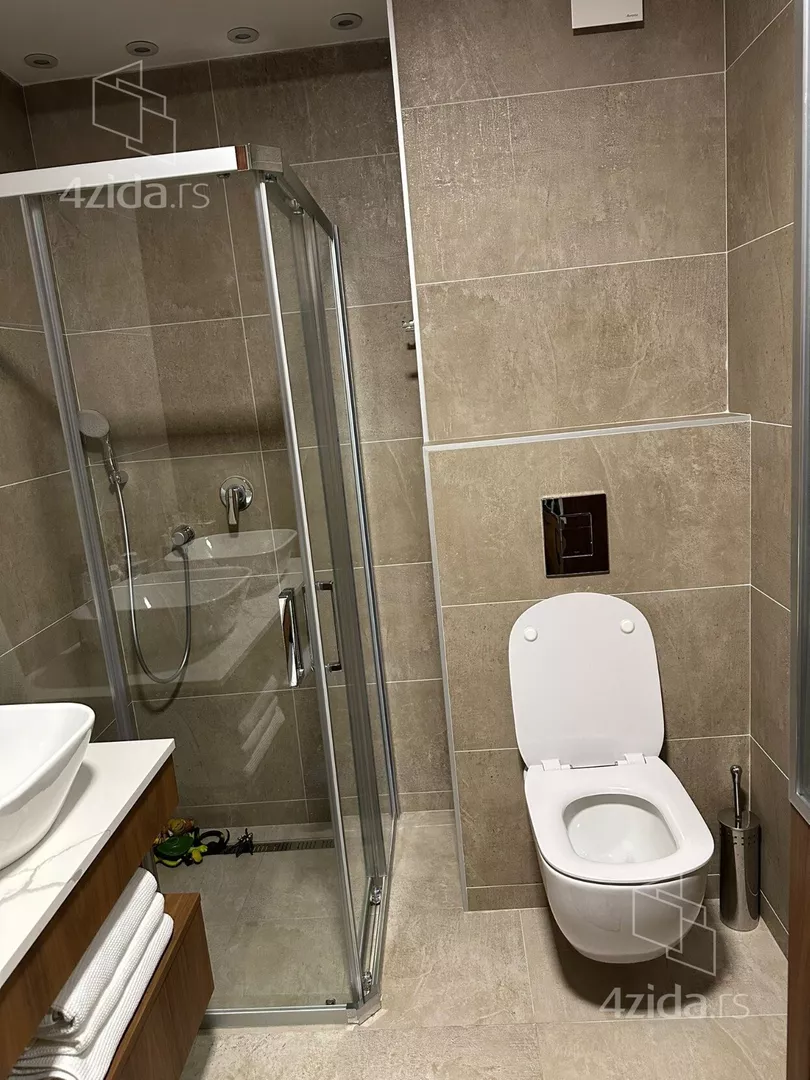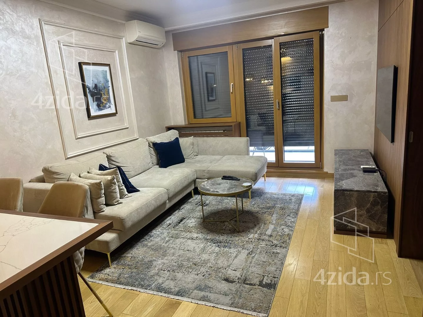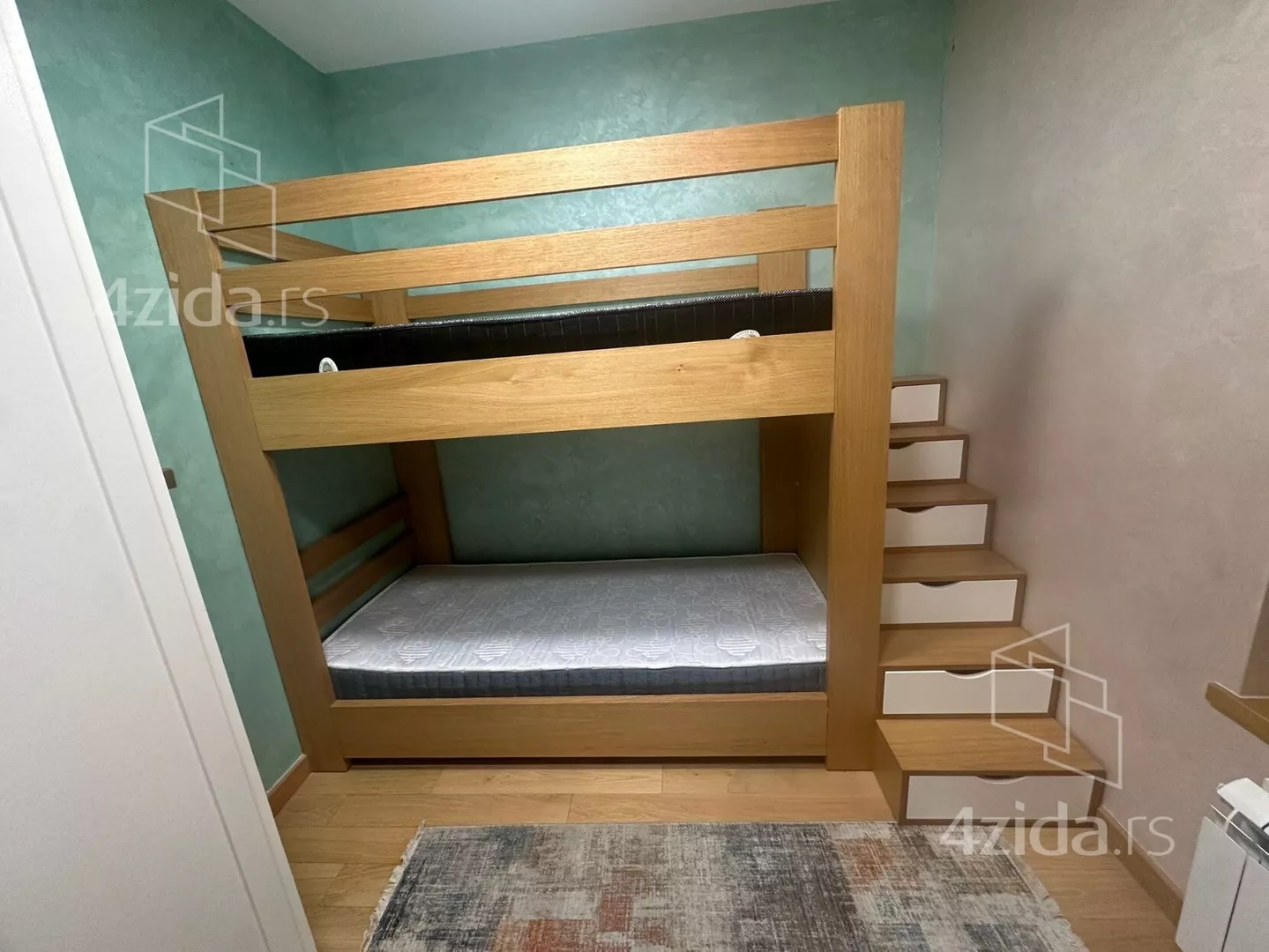 Stan poseduje 2 spavaće sobe, kupatilo, prostranu dnevnu sobu sa kuhinjom i trpezarijom i prelepu terasu. ( stan je luksuzno opremljen, nameštaj je po meri i bosh tehnika)