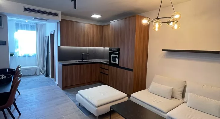 Nov dvosoban kompletno namešten stan u novoj zgradi, u neposrednoj blizini Bulevara Patrijarha Pavla.