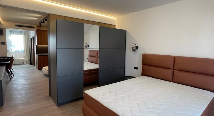 - Opremljenost: Namešteno - TV, klima, veš mašina, kuhinjski elementi, sudo mašina, frižider, zamrzivač, mikrotalasna rerna, šporet, rerna, ležaj, plakar, ugradni plakar, kancelarijski nameštaj