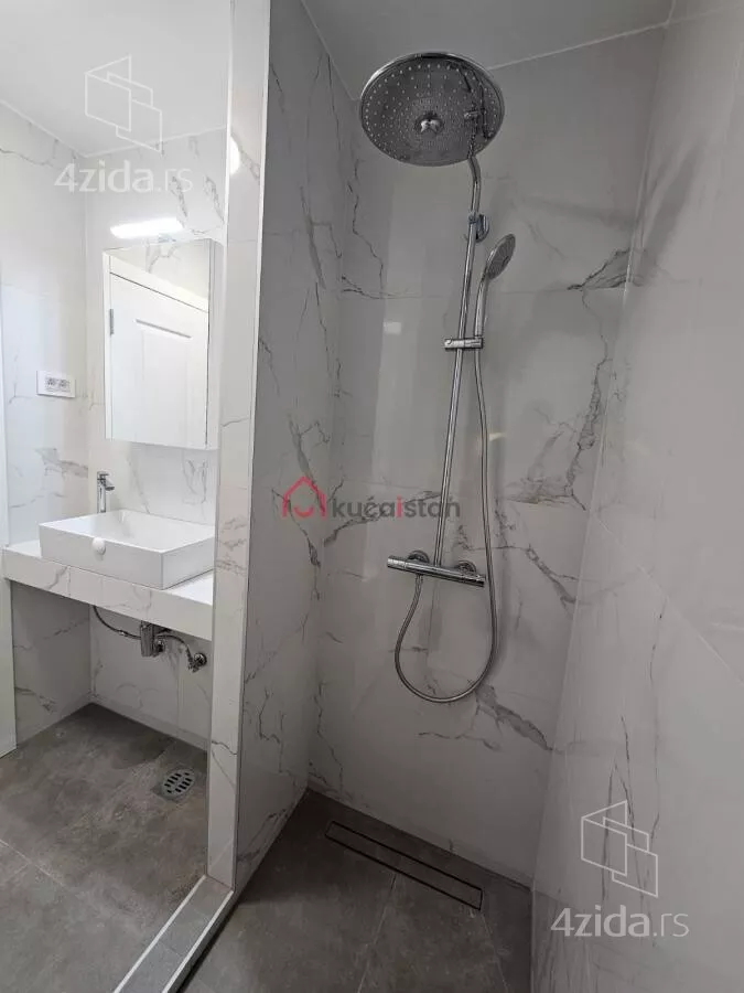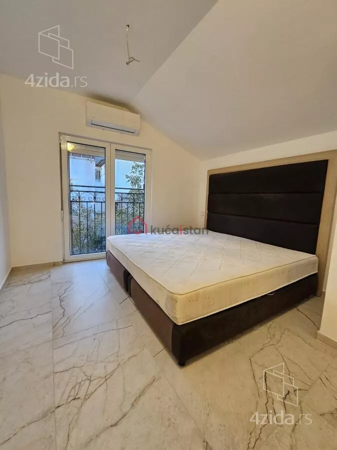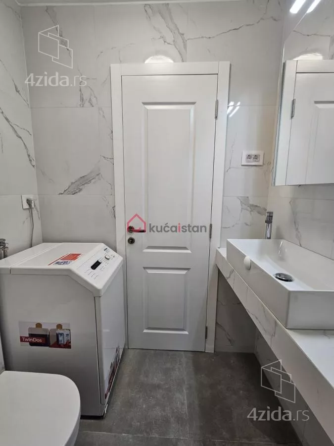 - Opremljenost: Namešteno - internet, interfon, TV, klima, veš mašina, sudo mašina, frižider, rerna, ležaj, plakar, kanalizacija