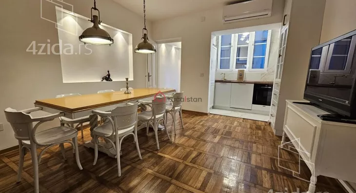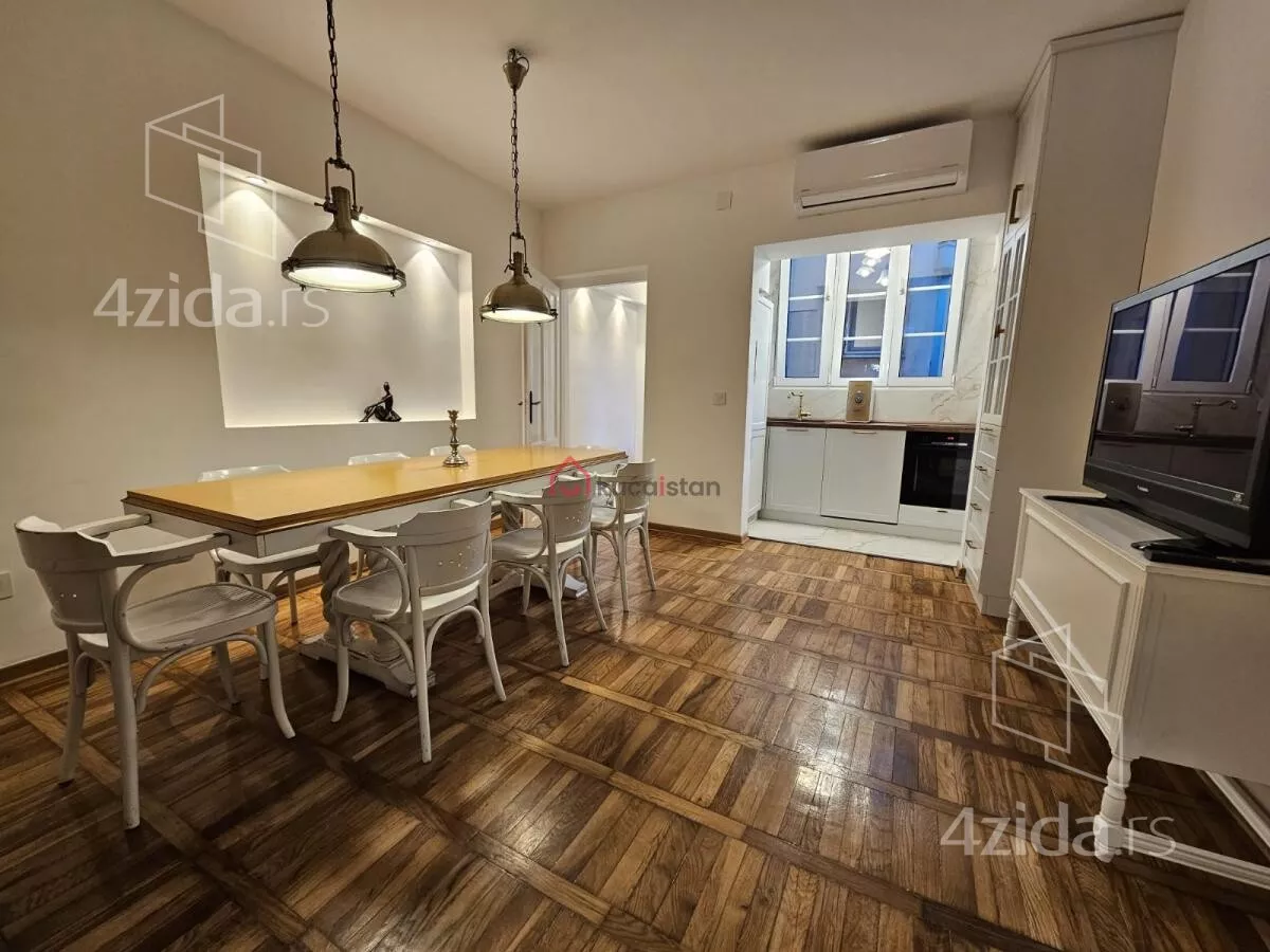 Enterijer je pažljivo dizajniran u neutralnim tonovima, sa odmerenom estetikom koja pruža prijatnu atmosferu i daje budućem zakupcu mogućnost da lako unese lični stil. Podovi su kompletno renovirani, korišćeni su vrhunski materijali. Grejanje je podno