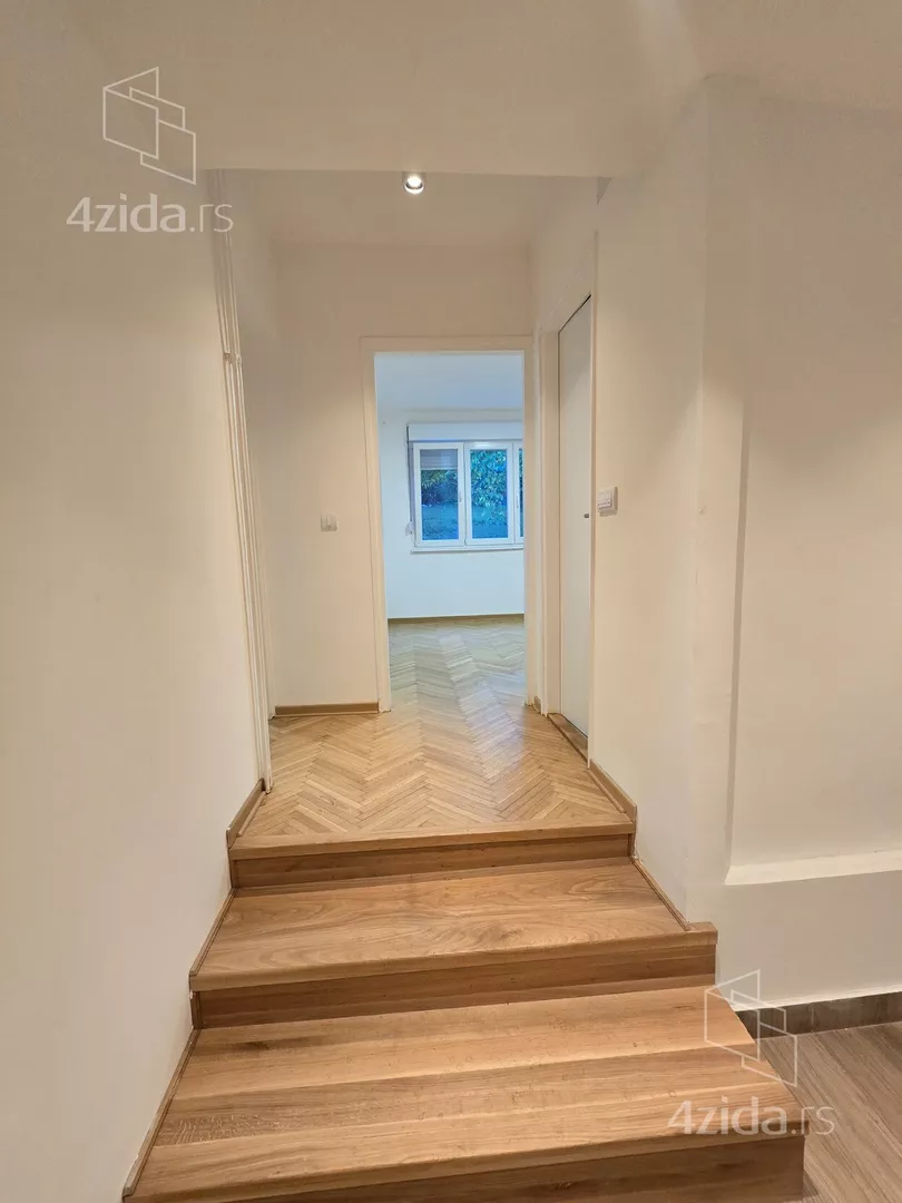 U ponudi je prostran četvorosoban stan koji poseduje sopstvenu garažu i dvorište. Stan je potpuno renoviran i prazan što ga čini idealnim za stanovanje i za poslovni prostor. Takođe poseduje 3 spavaće sobe, kupatilo, 2 toaleta i terasu. Na donjem nivou je direktan ulaz u garažu. Opremljen je sa 4 inverter klime i priključcima za internet u svakoj sobi. Stan se nalazi u mirnoj ulici sa odličnom infrastrukturom i povezanošću. U blizini su TC Big, brojni supermarketi, pijaca, škole, vrtići i gradski prevoz. Mesečni troškovi su niski, postoji mogućnost opremanja kuhinje. Preporuka!