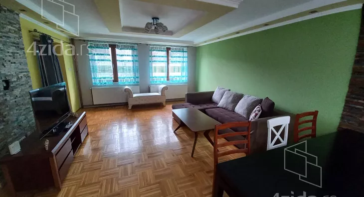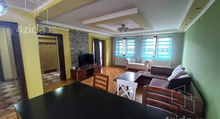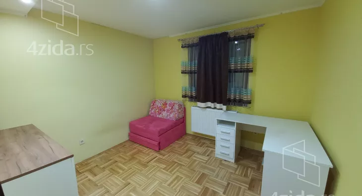 Komforan trosoban stan u prizemlju porodične kuće, površine 120 m2, u blizini bolnice, sastoji se od prostranog dnevnog boravka sa kuhinjom i trpezarijom, dve sobe, kupatilo, hodnik, terasa sa zidanim roštiljem, dvorište. Minimalan period zakupa 12 meseci. Odmah useljiv.
