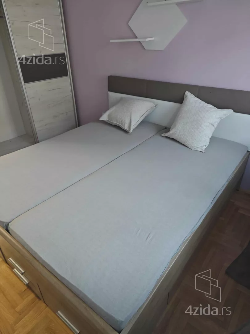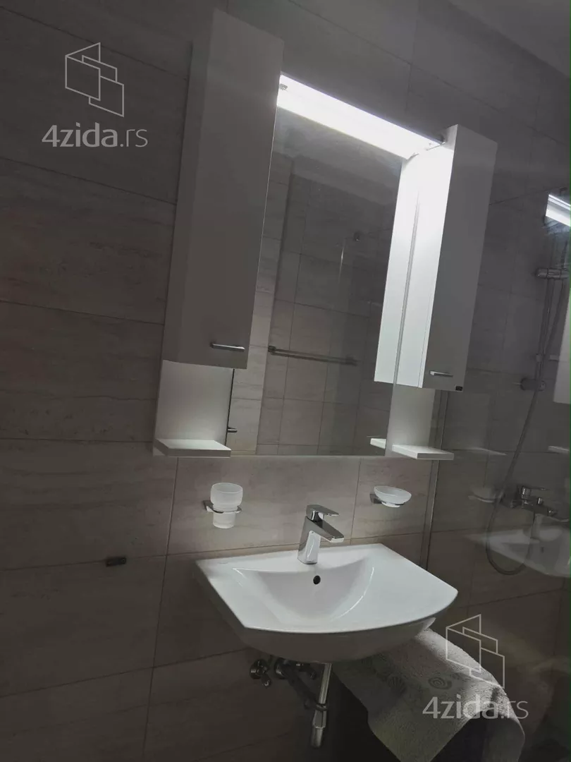 - Opremljenost: Polunamešteno - TV, klima, ventilacija, veš mašina, kuhinjski elementi, frižider, zamrzivač, šporet, rerna, ležaj, plakar, ugradni plakar