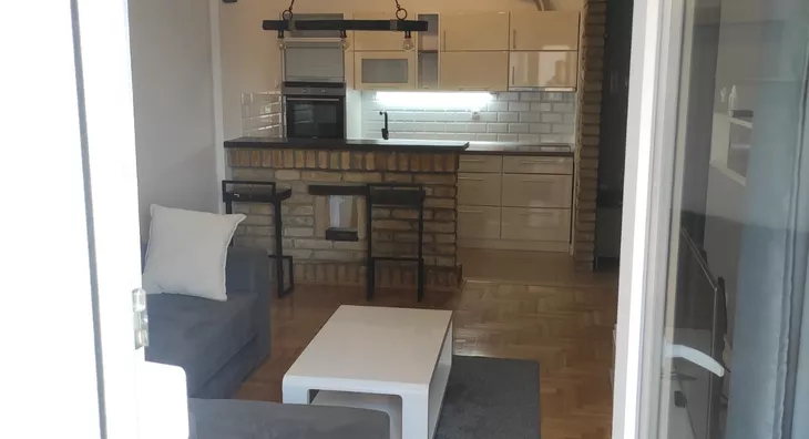 Izdaje se! Lepo namesten NOV stan od 48kvadrata,odmah useljiv! Velika dnevna soba +1 spavaca.