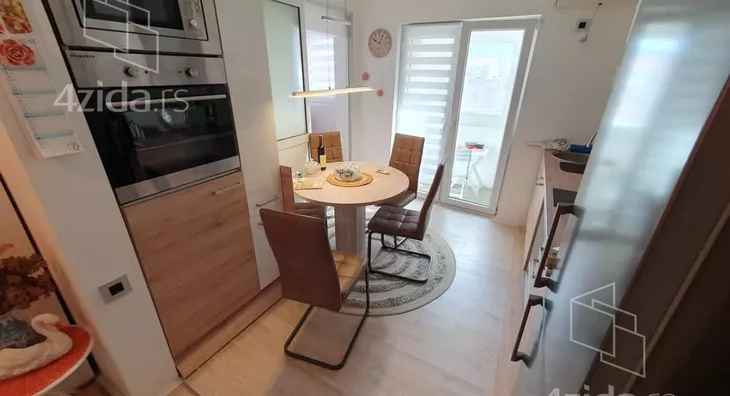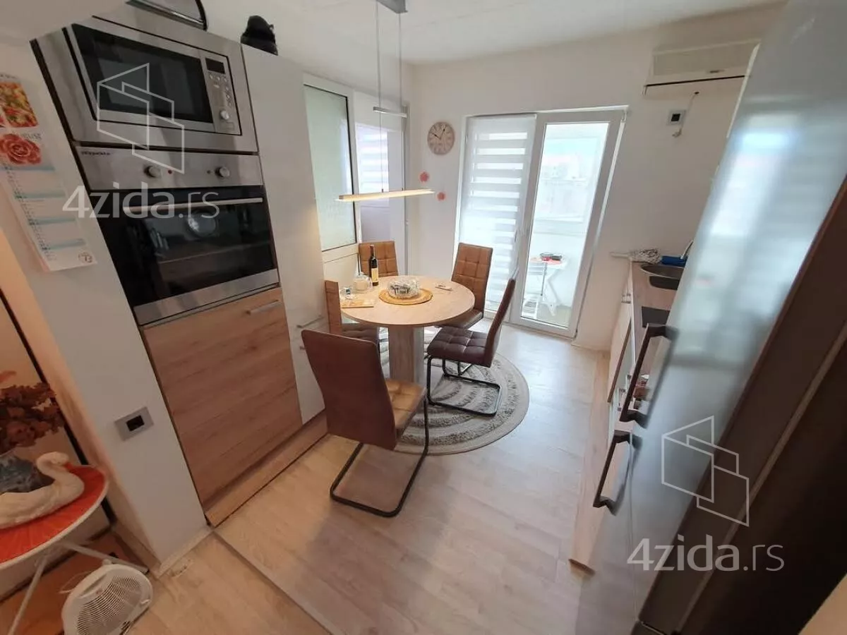 - Opremljenost: Namešteno - interfon, TV, klima, veš mašina, sudo mašina, frižider, rerna, ležaj, plakar