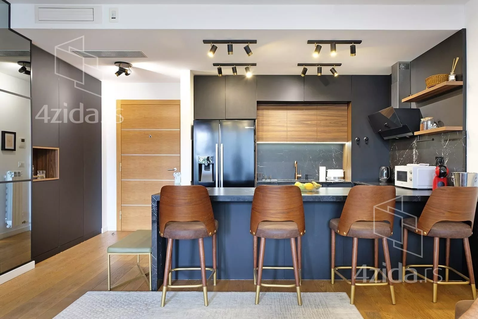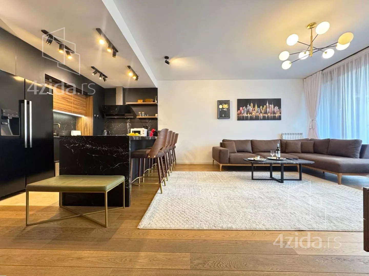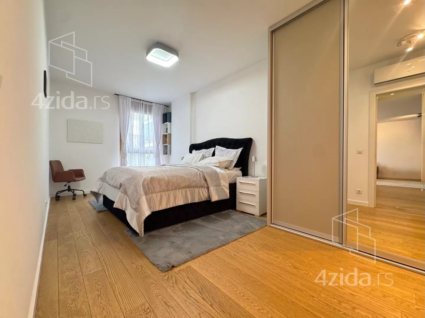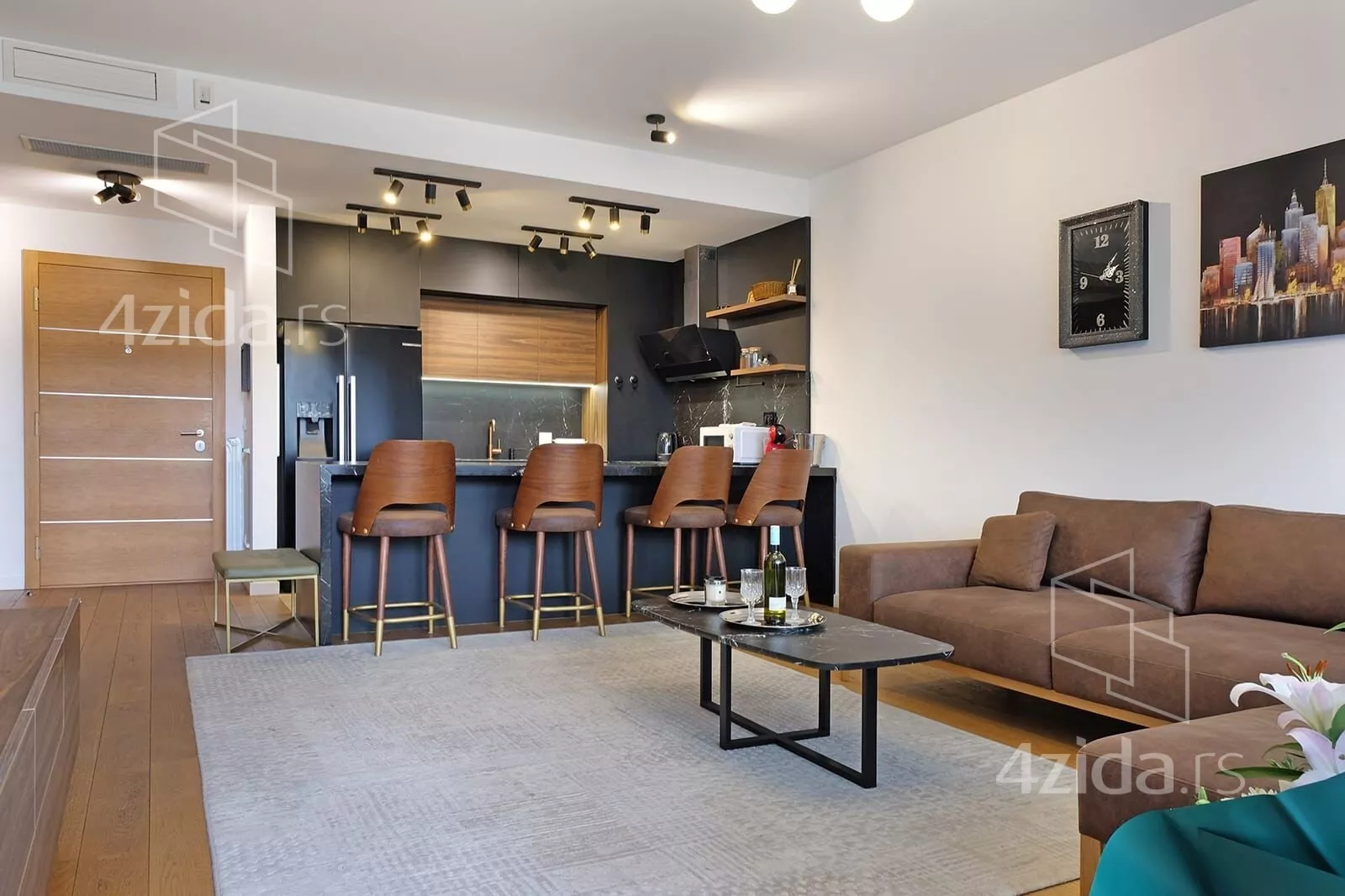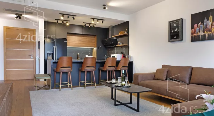 Stan je namešten i odmah useljiv. Čine ga: otvoreni koncept dnevnog boravka sa kuhinjom i trpezarijom, terasa, hodnik, zajedničko kupatilo i dve spavaće sobe-od kojih je jedna master sa sopstvenim kupatilom.