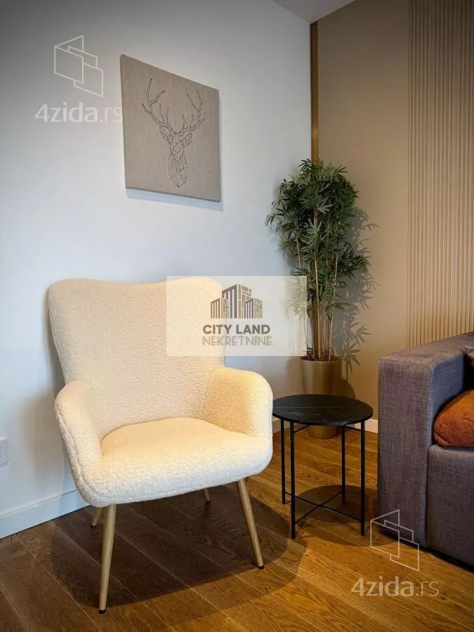 - Opremljenost: Namešteno - internet, interfon, TV, klima, veš mašina, sudo mašina, frižider, rerna, ležaj, plakar