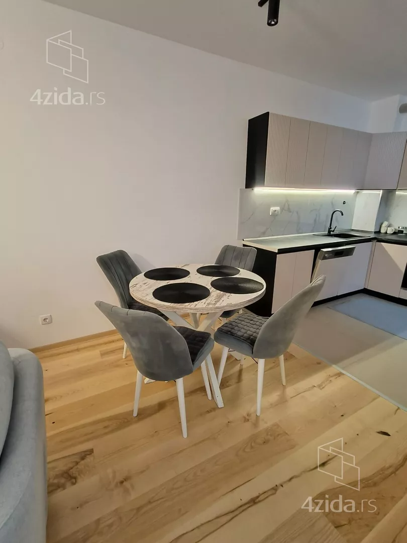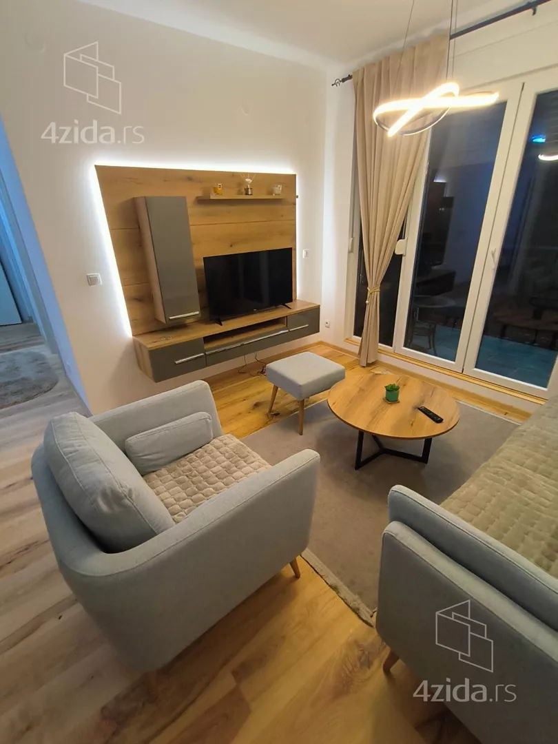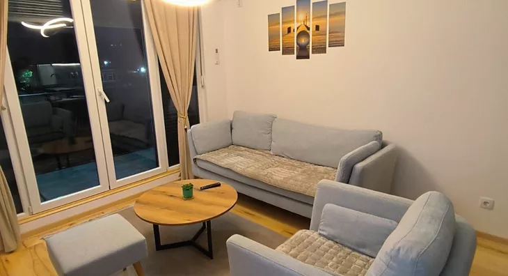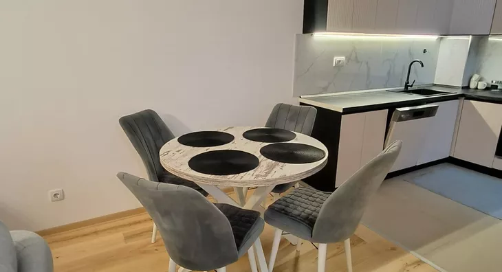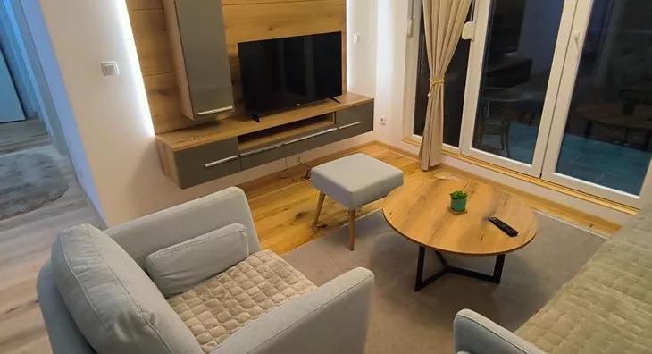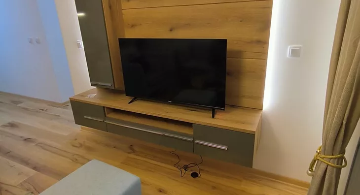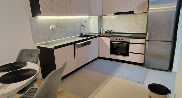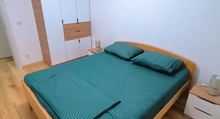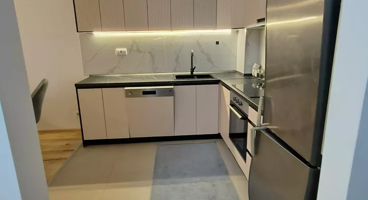- Opremljenost: Namešteno - TV, klima, veš mašina, kuhinjski elementi, sudo mašina, frižider, zamrzivač, šporet, rerna, ležaj, plakar