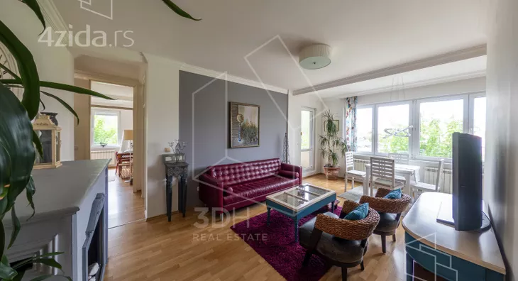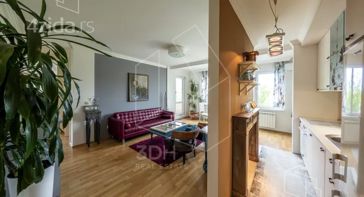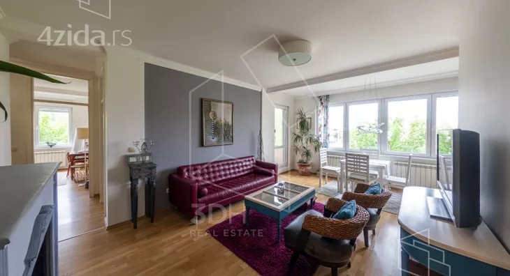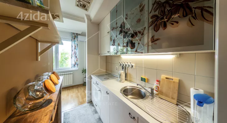 Stan je dvostrano orijentisan (Sever, Zapad) i veoma svetao tokom čitavog dana. Kompletno je namešten i opremljen vrlo kvalitetno i sa ukusom.