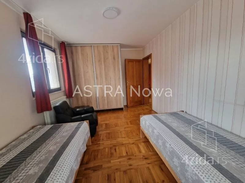 Odličan, zaseban stan (kuća) na tri nivoa sa dva parking mesta u dvorištu. Lokacija-preko puta Grand kafe, u mirnoj ulici, bez buke. Sastoji se od dva dnevna boravka, kuhinje, 4 spavaće sobe i tri terase. Grejanje u sezoni 200 eur, CaTV 4.000 din, infostan 1500, struja i voda po potrošnji. Idealna za veliku porodicu ili radnike Minimalni zakup 6 meseci, jedan depozit obavezan. Ag. provizija 50%
