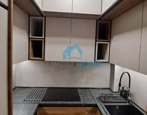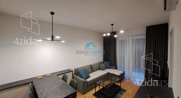 Stan je opremljen nameštajem po meri i rasvetom visokog kvaliteta, što doprinosi modernom i elegantnom izgledu.