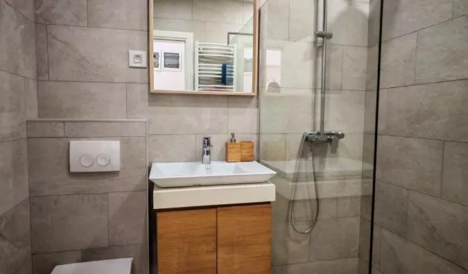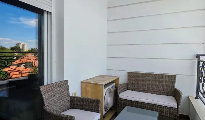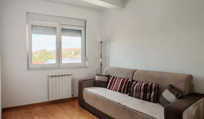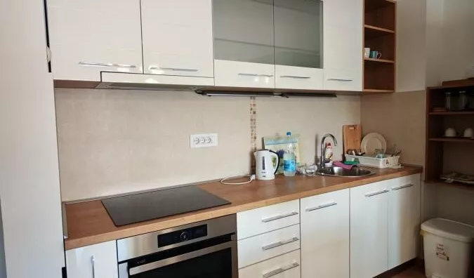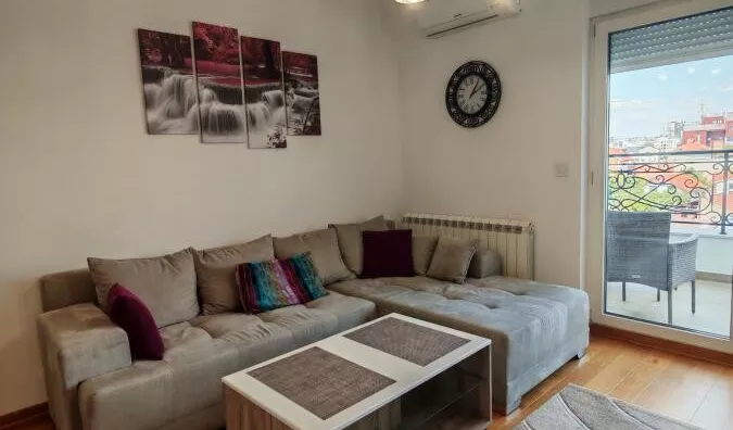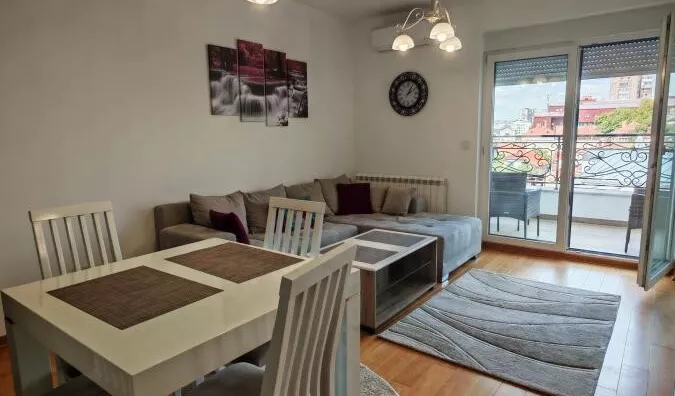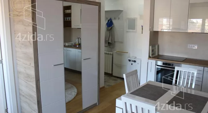 - Opremljenost: Namešteno - internet, interfon, TV, klima, veš mašina, sudo mašina, frižider, rerna, ležaj, plakar