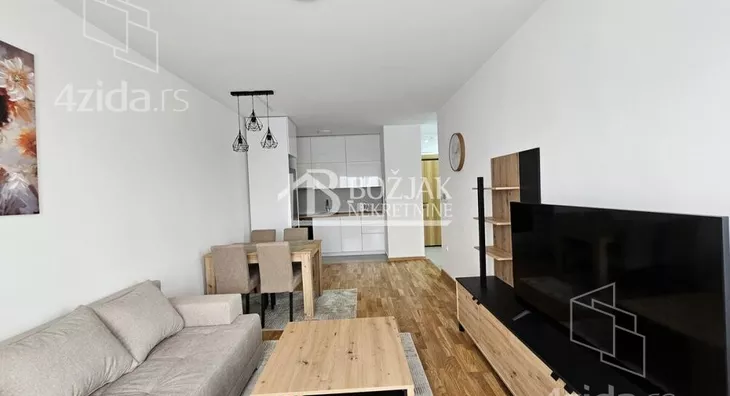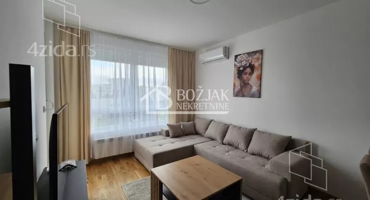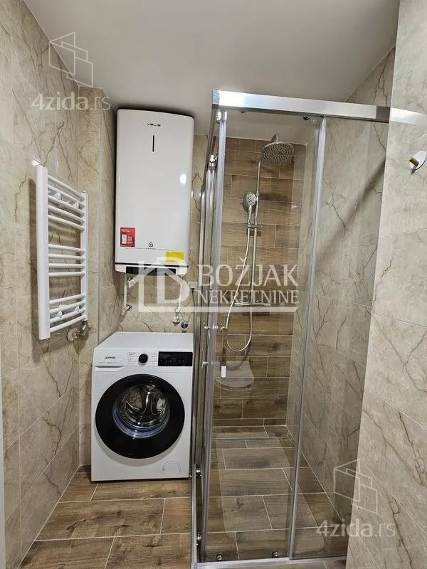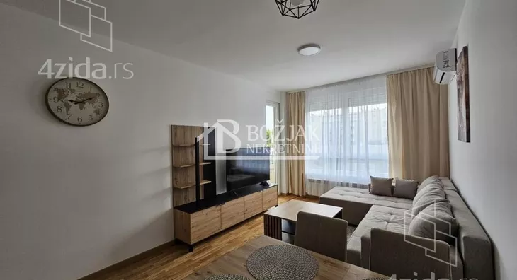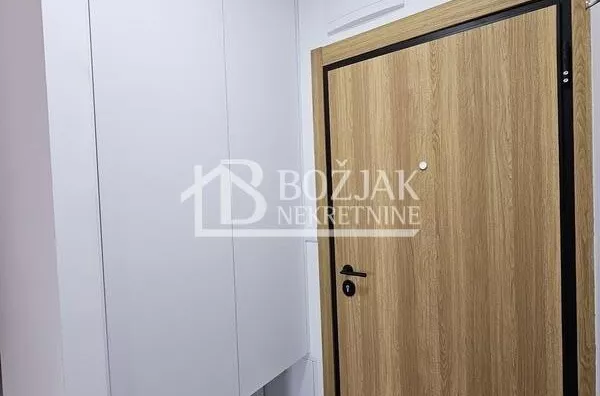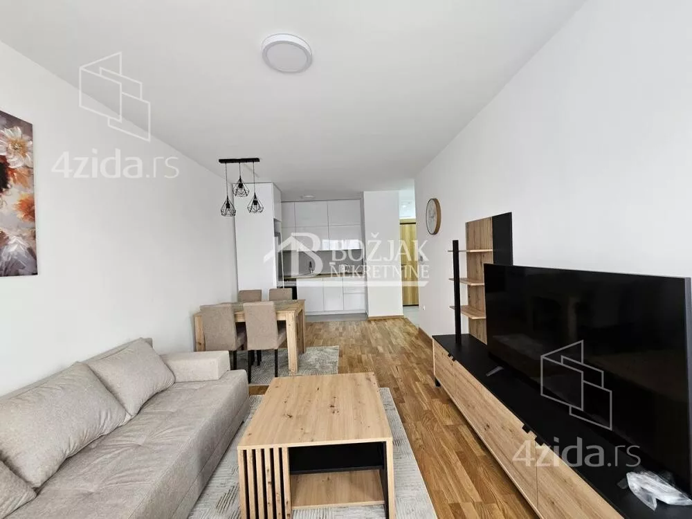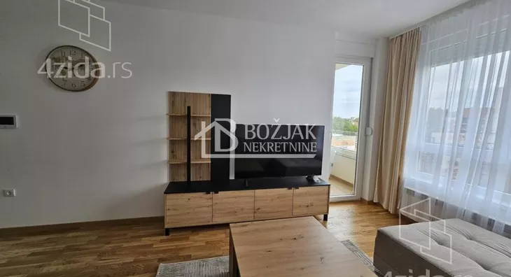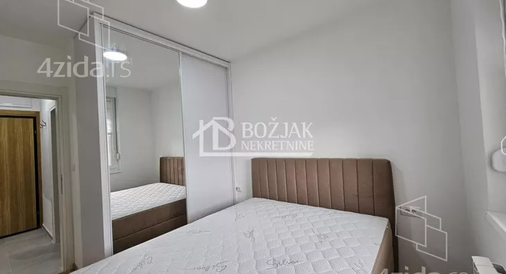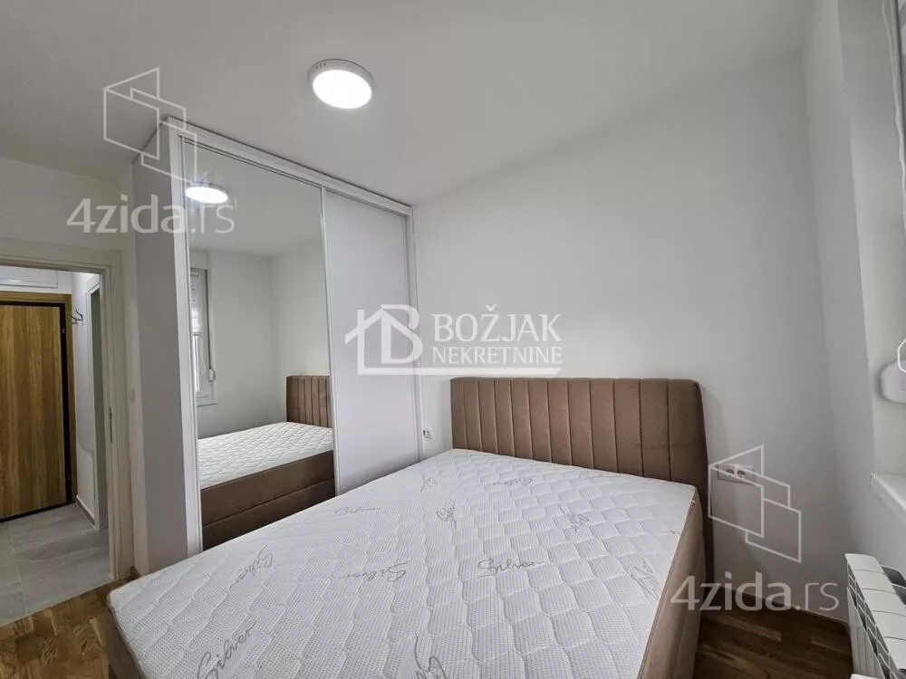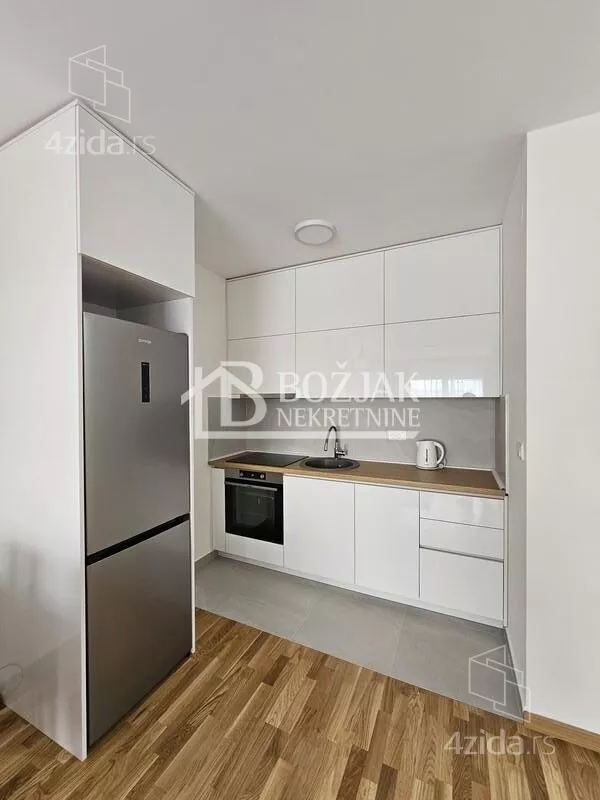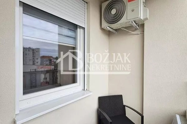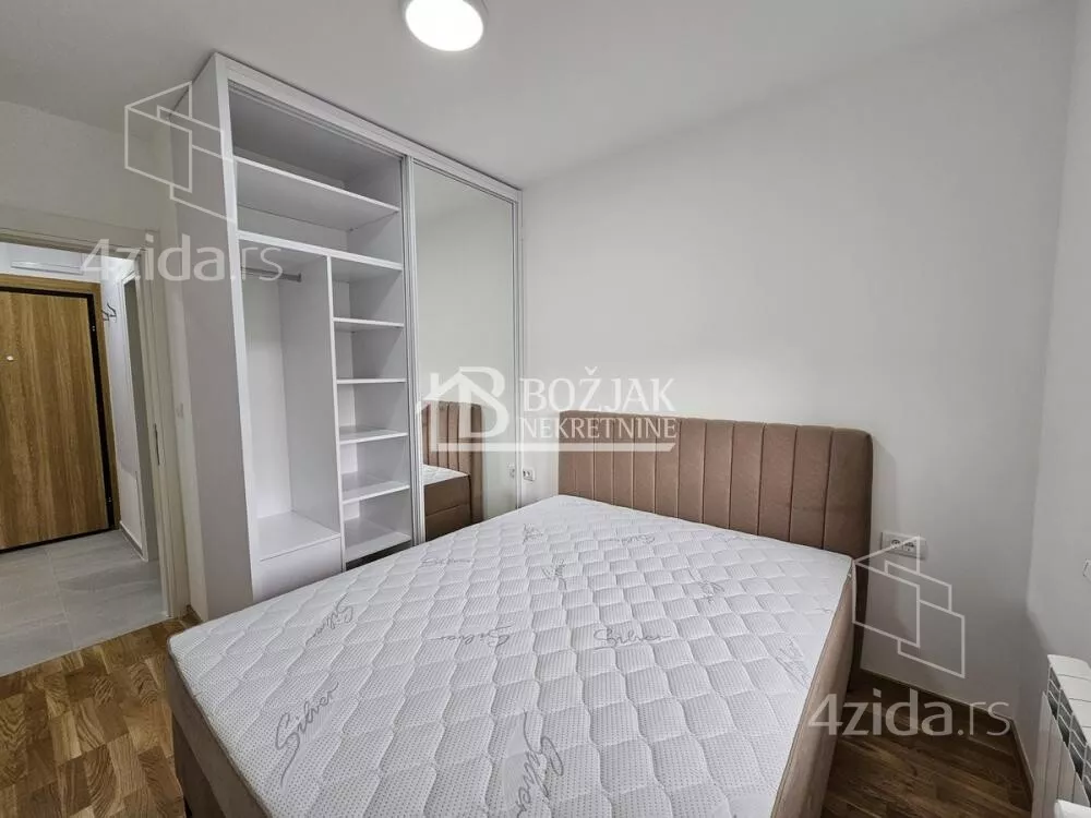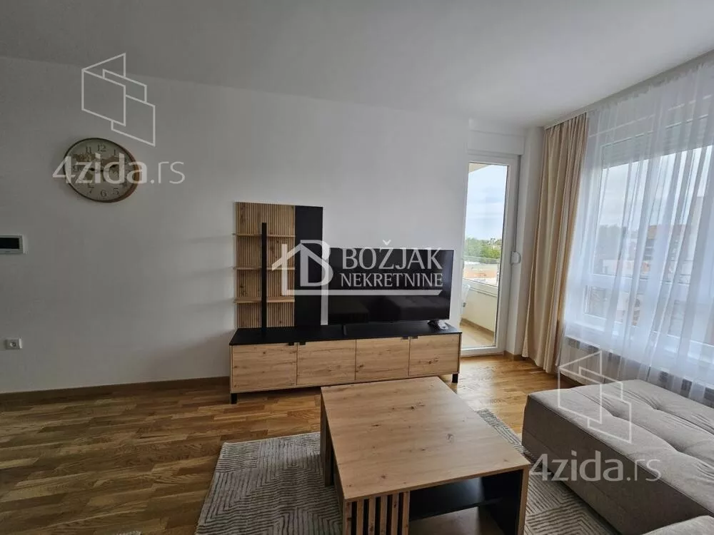 Izdaje se nov, jednoiposoban stan od 41m2, na drugom spratu u zgradi sa liftom i video-interfonom. Stan je u novosagrađenoj zgradi, u blizini Gomex Totala i sada se izdaje prvi put. Stan ima ulaz, kuhinju spojenu sa trpezarijom i dnevnom sobom iz koje se izlazi na terasu, spavaću sobu i kupatilo. Stan je opremljen novim nameštajem, kuhinja je rađena po meri sa ugradnom tehnikom (keramička ploča za kuvanje, rerna, aspirator i mašina za sudove), frižider sa zamrzivačem u nastavku je trpezarijski sto sa stolicama, ugaona garnitura, klub sto i tv komoda sa TV-om.U kupatilu je tuš kabina i mašina za pranje veša. U spavaćoj sobi je veliki američki plakar i bračni krevet. hodniku je plakar sa čivilukom. Grejanje je centralno, hlađenje je na klimu. Stan se izdaje na duži vremenski period (godinu dana). Depozit je u visini jedne zakupnine. Agencijska provizija je 50% prve zakupnine. Agencijska provizija 50%